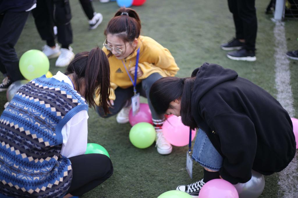 小游戏内容为踩气球。游戏开始同学们在操场上飞奔,寻找对手脚上绑的气球。看着同学们脸上的笑脸,部长们也加入了游戏当中。在寒冷的早晨,同学们的笑容让学校操场上增添了几分光彩。