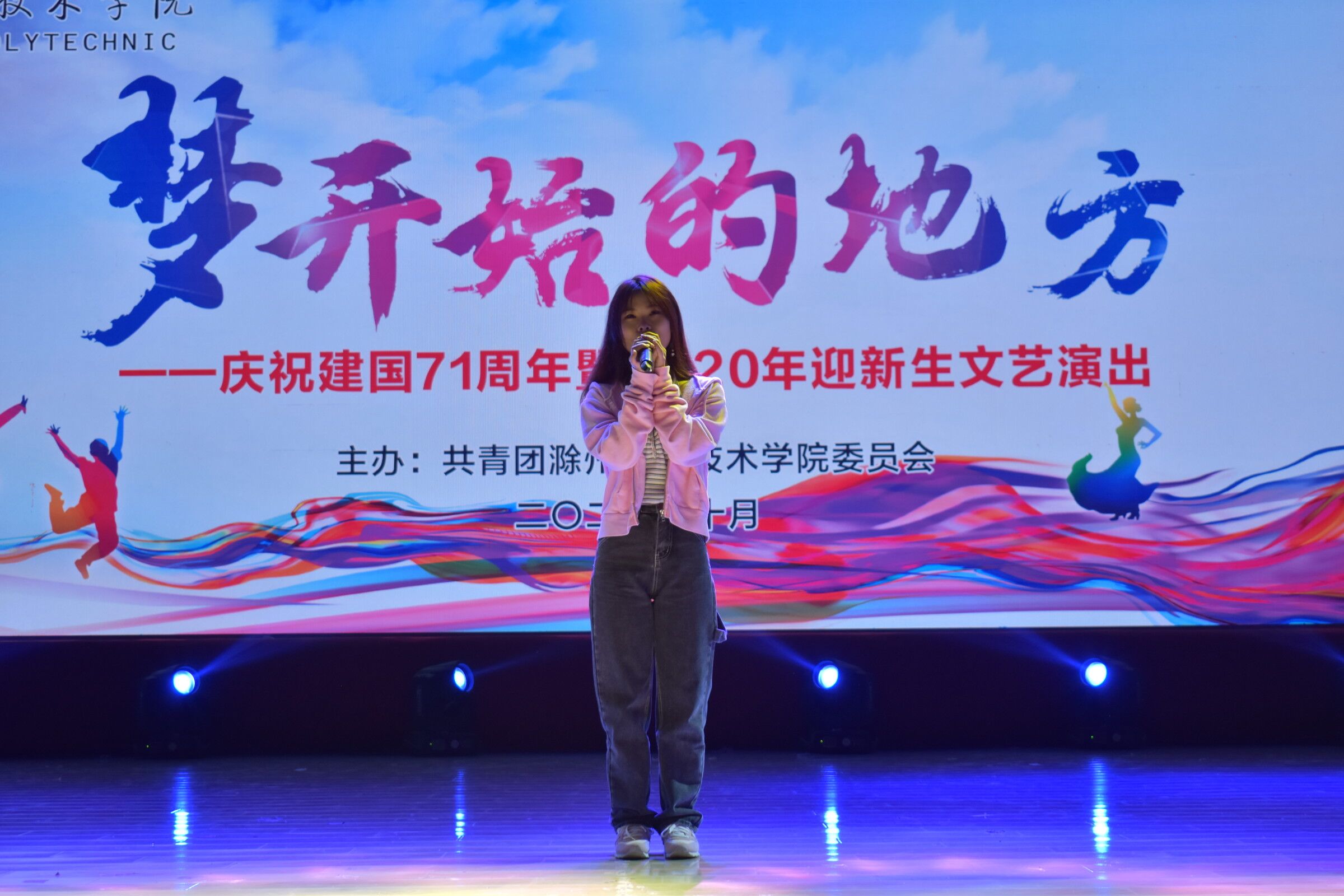 青春如歌时光正好,滁职骄子筑梦起航。本次晚会共分为“家国情怀,青春筑梦”、“不忘初心,奋勇前行”、“乘风破浪,芳华绽放”三个篇章,晚会通过歌舞,默剧,乐器等形式,向2020级新生展现了滁职丰富多彩的校园生活、朝气蓬勃的校园文化和修能致用,笃学致远的办学理念。其中,由大学生艺术团表演的《桃花红杏花白》、《Change your mind》等节目,将现场气氛一次次推向高潮。同时,晚会还特别设置了一个特别的节目——禁毒情景剧《青春正在起步》,警示全体学生们要保护自己,拒绝诱惑,在大学生活中健康成长。传媒与设计学院带来的一首学生独唱歌曲《等你下课》唤起全场的活跃氛围。