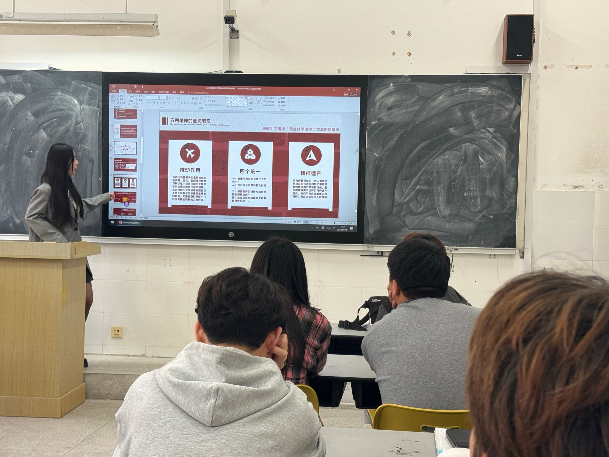 本次团课内容以学习五四精神为切入点,向同学们传达了爱国主义精神不仅是五四精神的重要精神遗产,还是支撑久经磨难的中华民族从站起来、富起来到强起来的价值理念,是推动中国人民走向文化自信的文化力量。