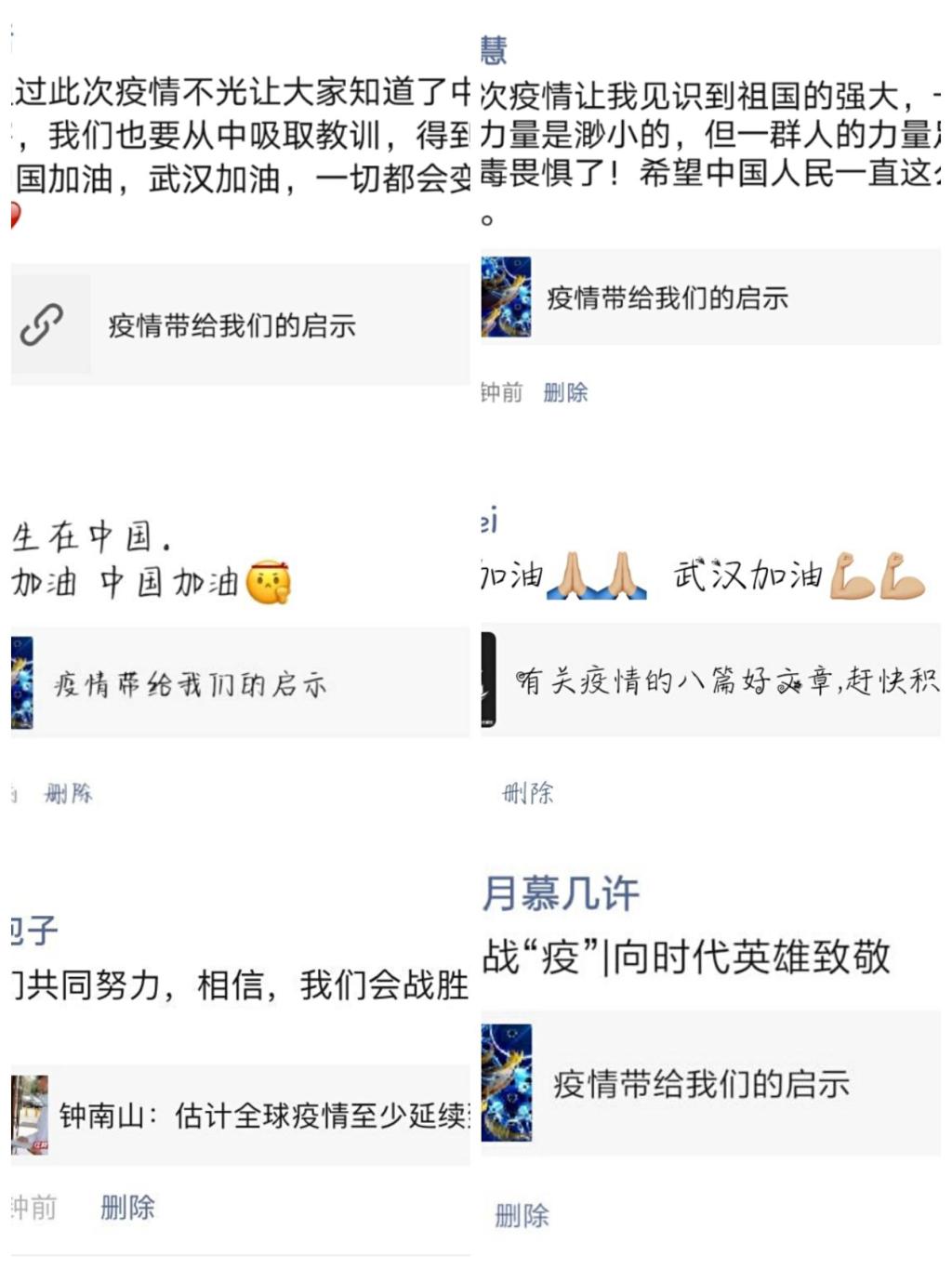 此次网络活动让团员们学到了雷锋的精神和信仰,也让大家对此次疫情防控有了更大的信心,活动结束后,大家纷纷在自己的qq、微博空间和微信朋友圈转发了关于疫情的防护内容与相关文章。