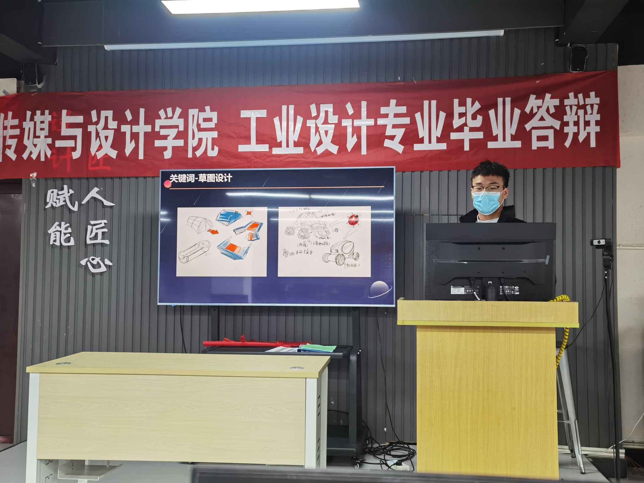 2022年12月7日,传媒与设计学院2023届工业设计专业的学生在德馨楼300教室举行了毕业设计答辩活动。担任此次答辩的评委老师有工业设计专业负责人王起老师及2位专业骨干教师。