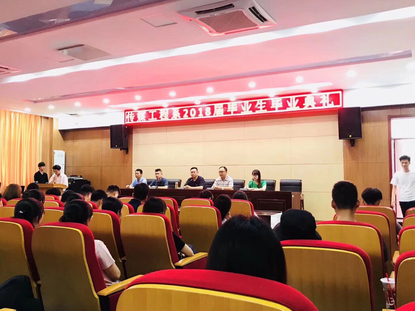 6月24日下午2点30分,传媒工程系于南阶205举办毕业生毕业典礼。参加此次典礼的有系党总支书记王广保、系副主任闻建强、教师代表和毕业班辅导员等。