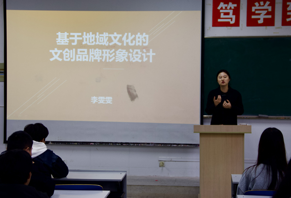 2021年11月17日下午2:40,传媒与设计学院李雯雯副教授在致学楼4110教室举办了基于地域文化的文创品牌形象设计专题讲座,数字媒体相关专业近百名学生到场听讲。
