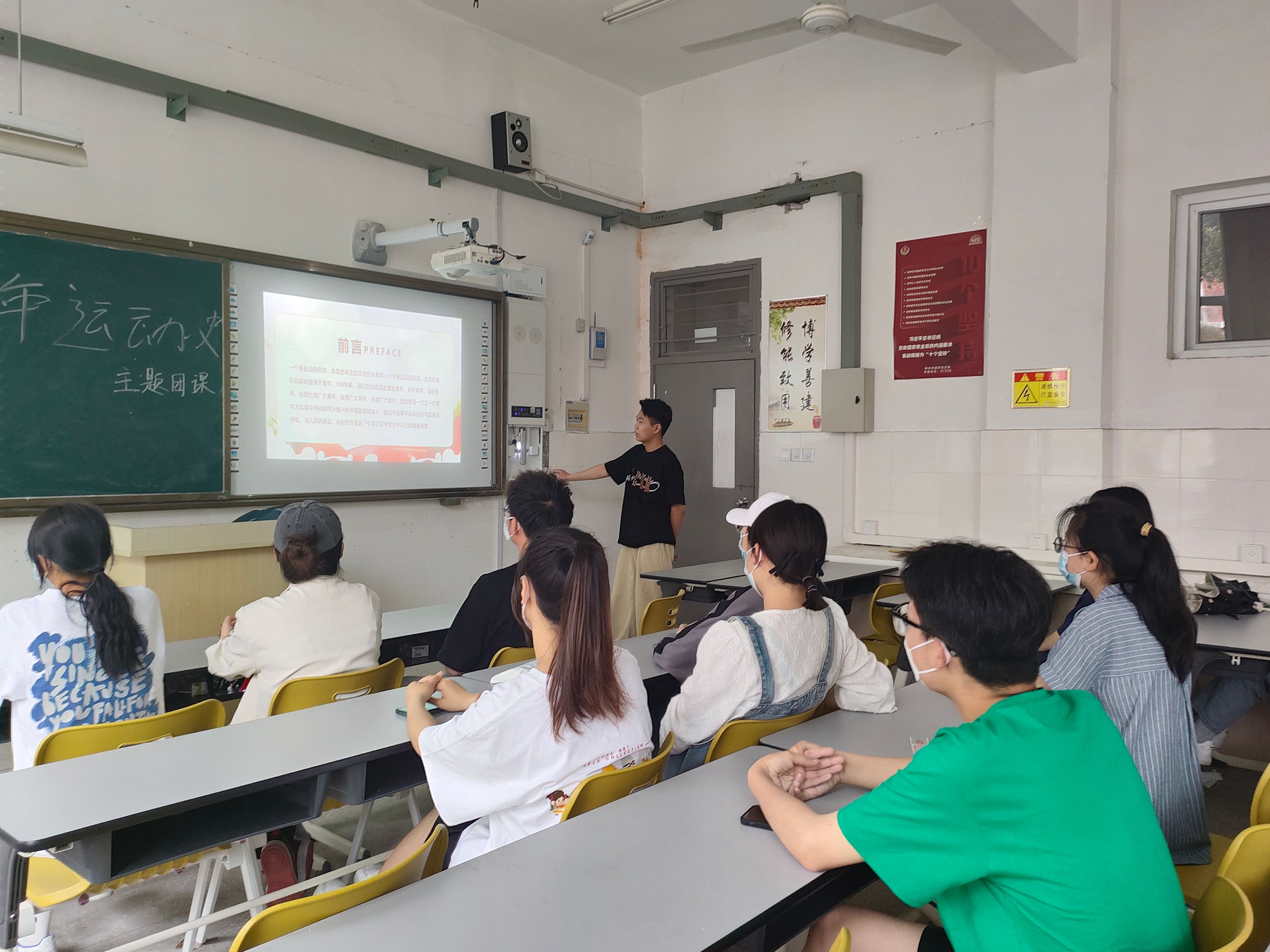活动中,各班团支书从青年团组织的诞生和中国社会主义青年团的创建两个方面深刻讲述了党领导中国青年运动的光辉历程、共青团在党的领导下团结带领一代代青年跟党奋斗的光辉历程。总结了共青团团结带领一代代青年为中国特色社会主义新时代做出的历史贡献,揭示了共青团的使命就是始终坚持党的领导、聚焦中心大局、保持先进本质、发挥组织优势、始终扎根青年、全面从严治团。