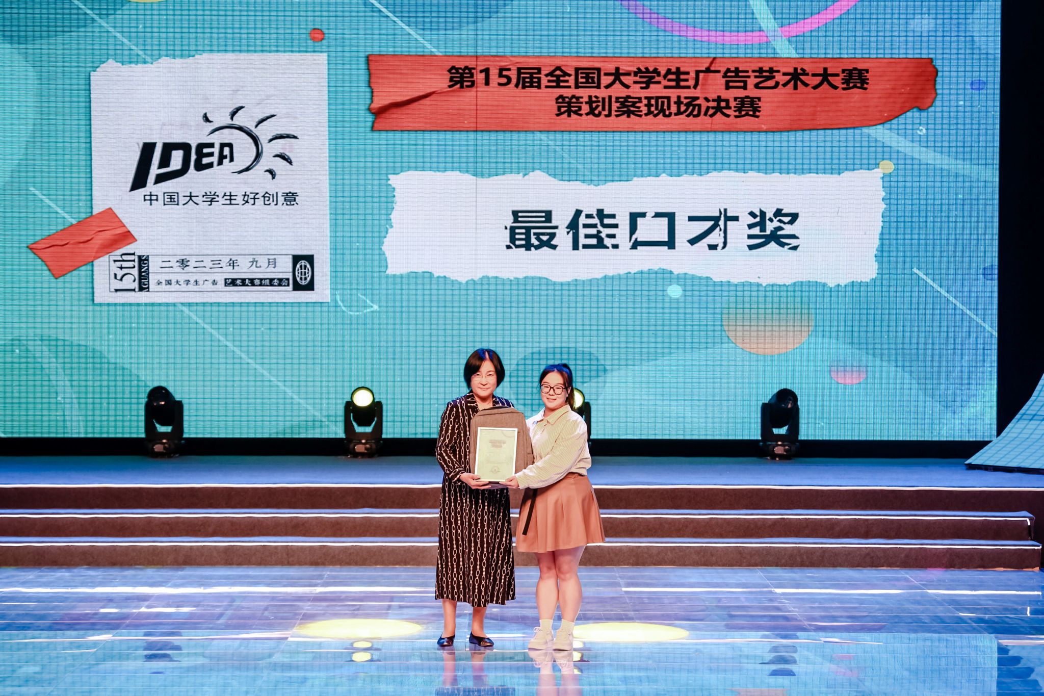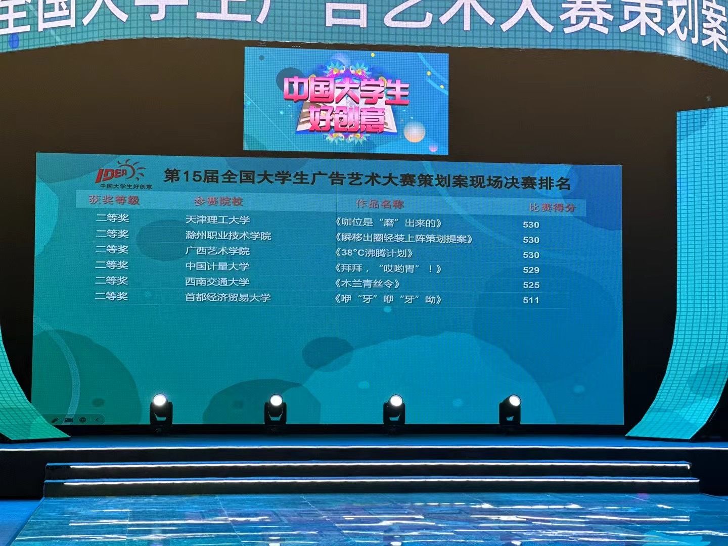 近日,第十五届全国大学生广告艺术大赛获奖名单正式公布。传媒与设计学院再创佳绩,斩获国家级二等奖1项,中国高等教育学会广告教育专业委员会副理事长兼秘书长、原《人民日报》社广告部主任刘瑞武为参赛学生现场颁奖。此外,传媒与设计学院在大赛省赛选拔中获一等奖3项、二等奖4项,三等奖5项。