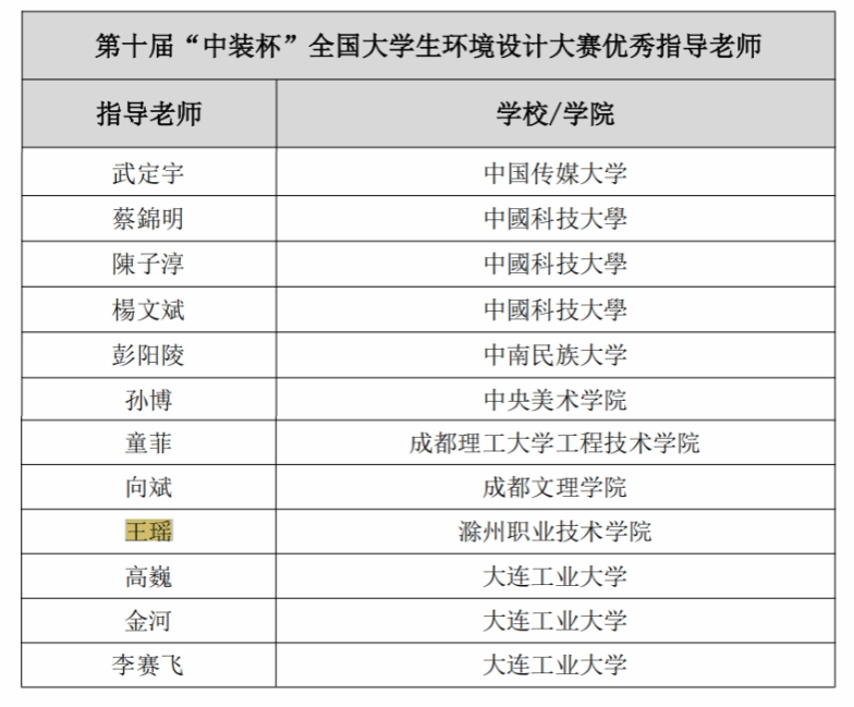 近日,第十届“中装杯”全国大学生环境设计大赛评审结果公布,awc官网师生与本科院校同台竞技中在众多杰出的参赛者中脱颖而出,由传媒与设计学院王瑶老师指导,节国强、杨灿参赛团队创作的作品荣获国赛三等奖。