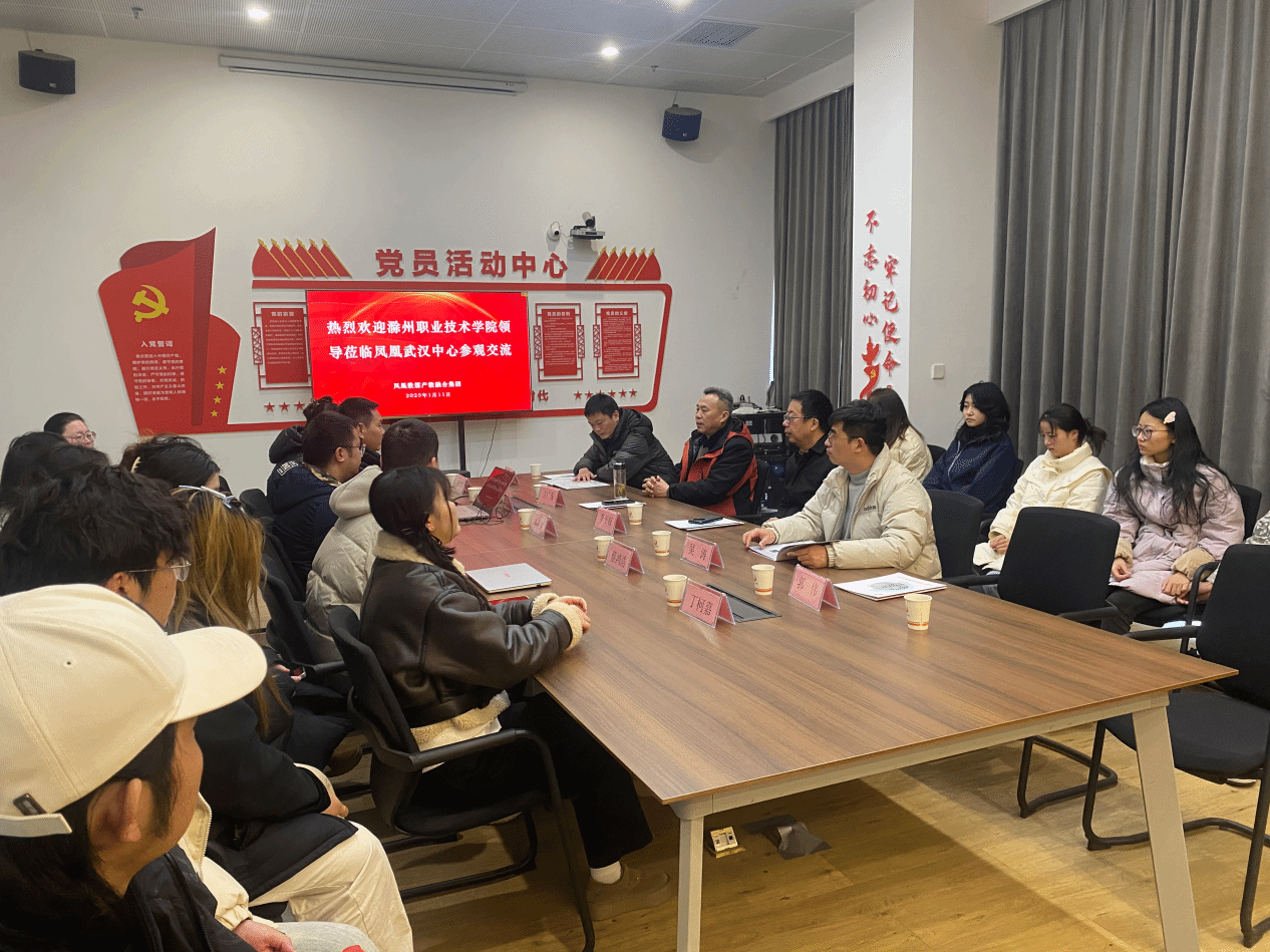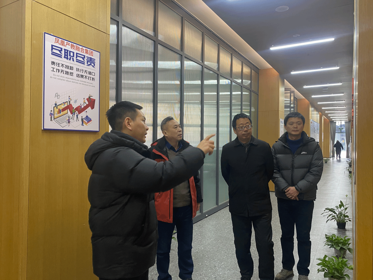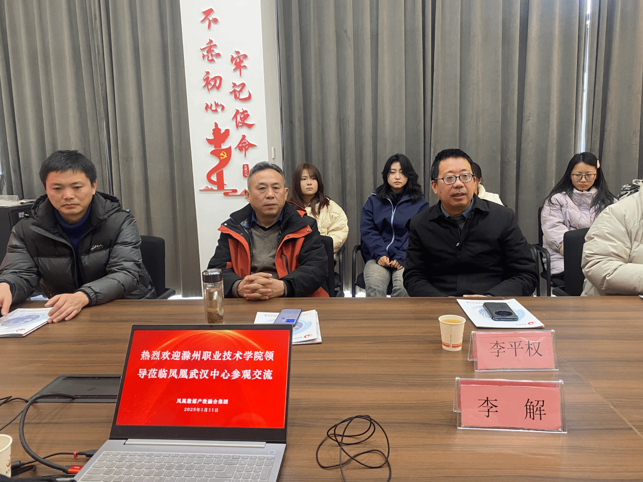 为进一步加强awc官网学生岗位实习管理,增进与实训基地的沟通交流,传递学校对实习学生的关怀。1月11日上午,校党委委员、工会主席李平权,传媒与设计学院党总支书记王广保,传媒与设计学院教学秘书、骨干教师蔡忠弟,传媒与设计学院专职辅导员郭伟一行4人来到凤凰数媒科技(武汉)产教融合企业实践中心,探望在此参加实训的17名学生和驻点老师。