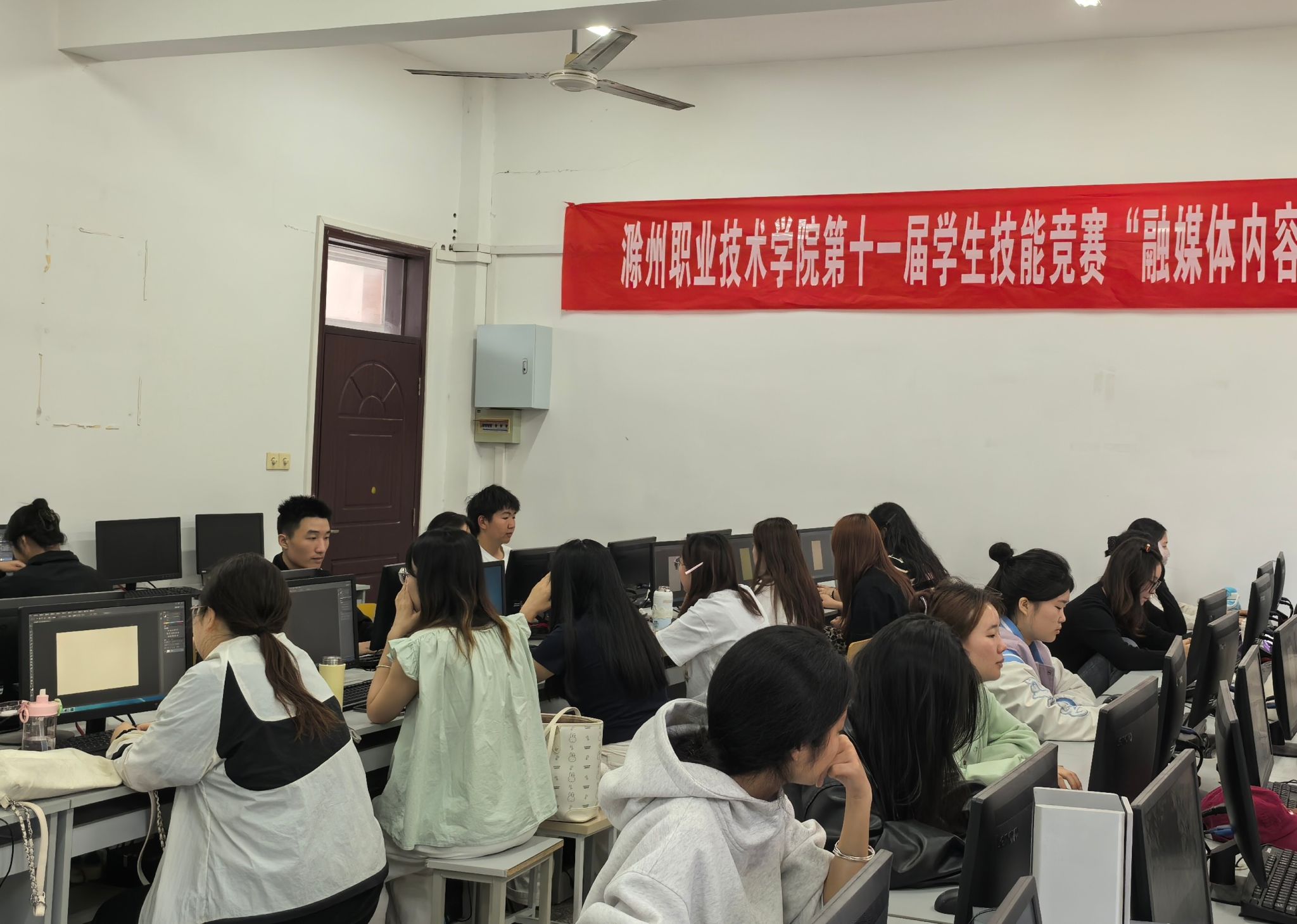 5月11日,传媒与设计学院在德馨楼204教室举行第十一届学生技能竞赛“融媒体内容策划与制作”赛项。