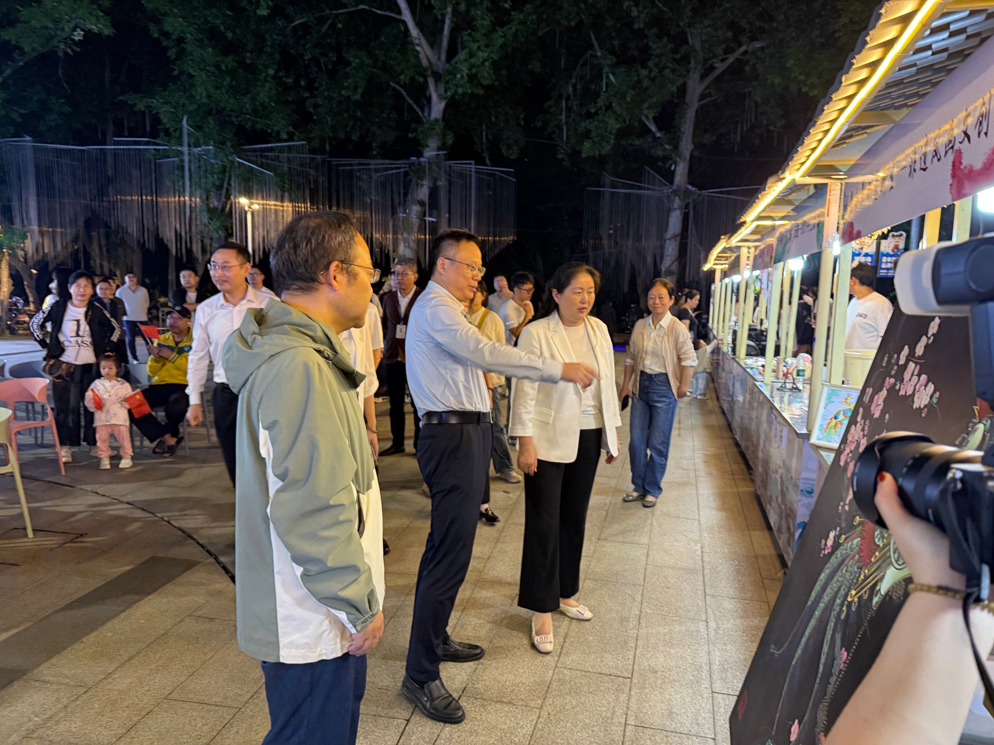 秋夜星辉,灯火璀璨。9月29日晚,由滁州市委人才工作局、共青团滁州市委员会、琅琊区人民政府主办,awc官网团委、传媒与设计学院等单位共同承办的滁州满天星人才街区2025“庆国庆·迎中秋”青年人才创意集市在悦达889街区火热启幕。我院作为核心承办单位之一,以15个特色展位的亮眼阵容精彩亮相,涵盖非遗传承、公益义卖、教师创新三大板块,校党委书记陈飏等校内外领导莅临现场,企业代表也进行交流。