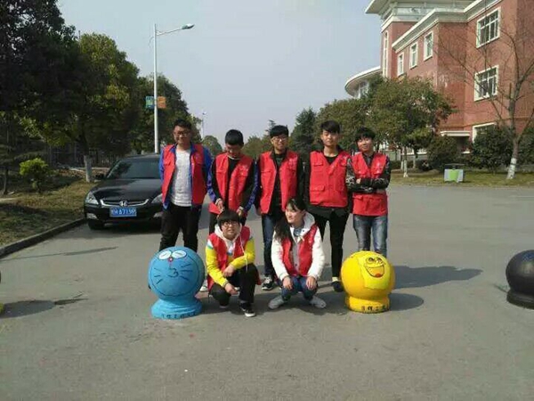2017年3月29日中午12点半,传媒系学生会在三月暖暖的阳光下对校园里一个个圆球形的维护石进行了精心的“装扮”,在雷锋月里为校园增添了一抹风采。