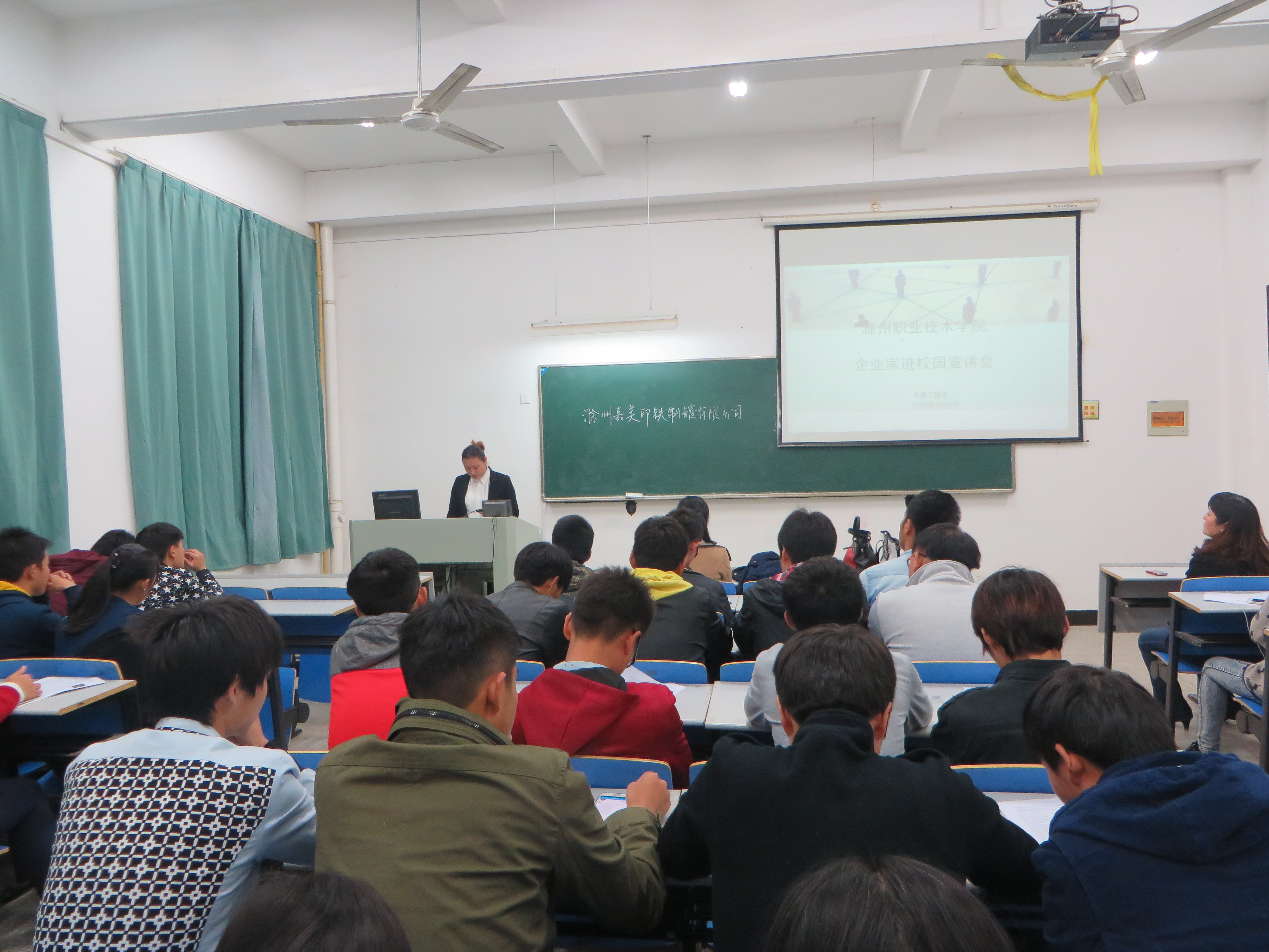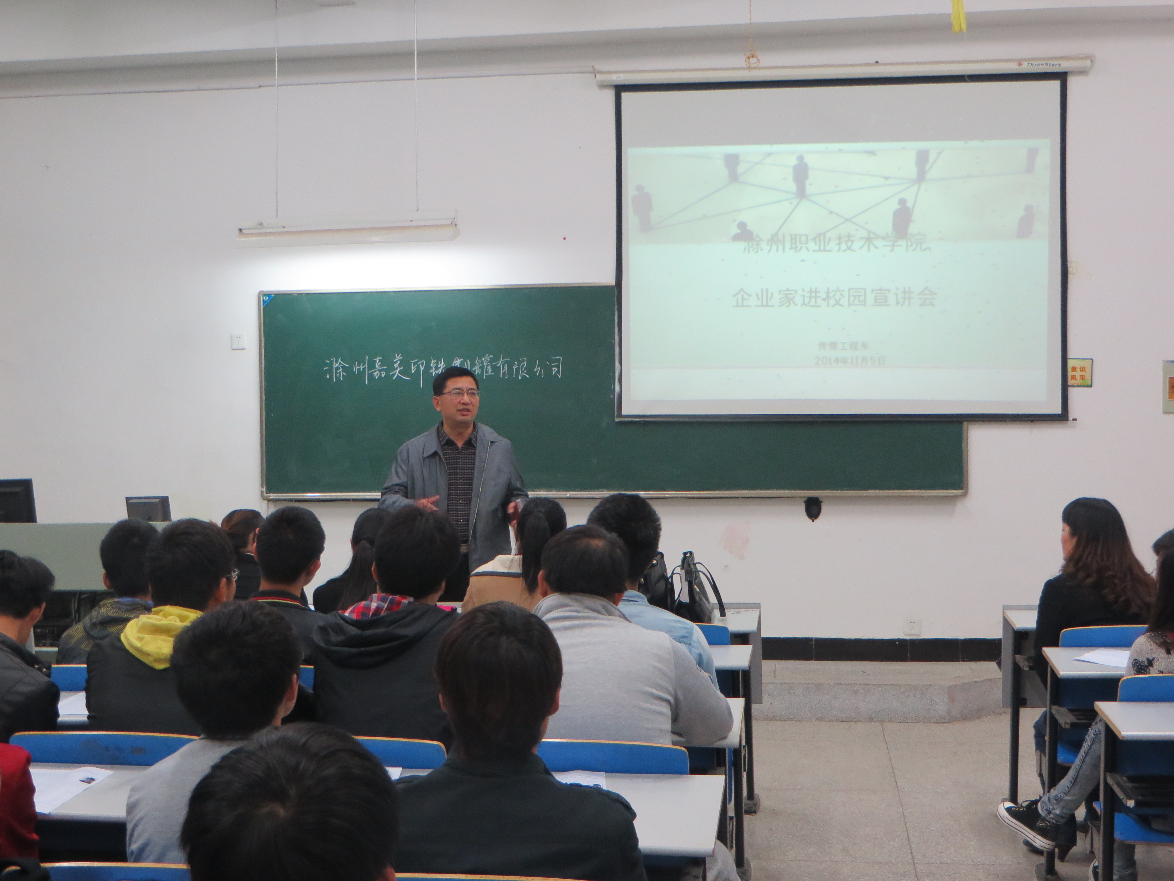 11月5日下午awc777万象城娱乐官网传媒工程系在艺术楼102举行了企业家进校园宣讲会,院长助理、招生就业处处长穆松莅临现场并发表了讲话,此次活动的宣讲人为嘉美印铁制罐有限公司人力资源部的王娟女士,参与此次活动的是传媒工程系的主要学生干部。