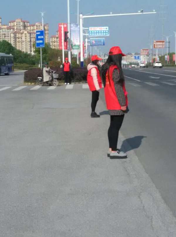 在组织部部长杨振的带领下同学们在马路两边与人行道引导路过的行人和同学,有些同学为了贪图省事不想走人行横道,志愿者们及时将其劝阻,并且 与其说了横穿马路的危险性,对方也表示下次不会再这样做了。