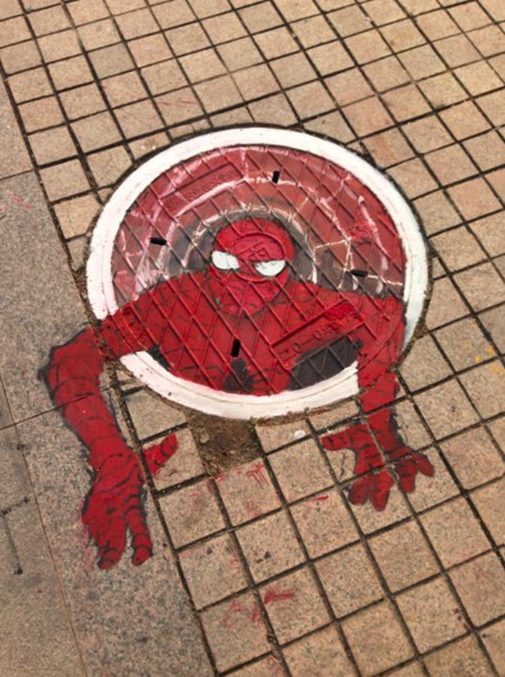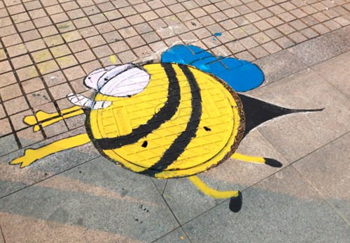 自12月开始,经历了一个星期的筹备,艺术设计系师生一起创意设计了各种造型的井盖图案,经过筛选,选出部分图案进行绘制,有蜘蛛侠爬出井盖,有机器猫造型,有七星瓢虫,蜜蜂等各种卡通造型图案,非常有趣美观,12月18日上午开始,艺术系同学们开始带着颜料画笔等工具在校园中心广场的地面上进行了十只井盖的创意绘制,引来了很多同学的驻足欣赏。并发出啧啧赞叹!