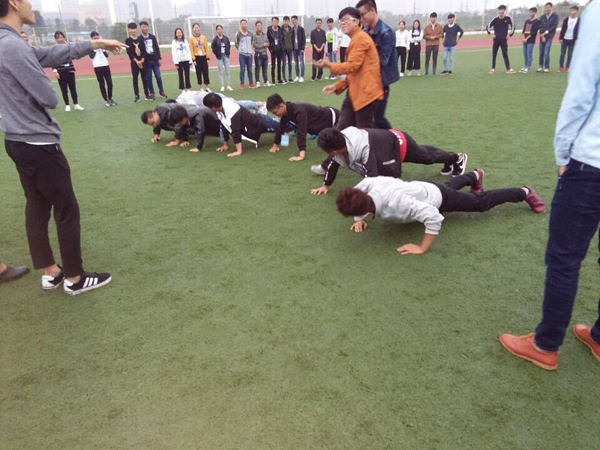 晨跑过后,传媒系学生会主席带领全体学生会成员做了小活动,所有同学围成一个圆圈,按照所听到的数字抱在一起,人数与数字一致则过关,反之淘汰。由于各部门部长的加入,气氛更加的热烈。