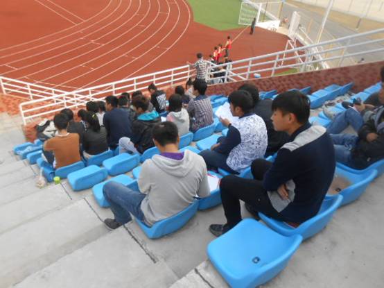 当运动员在赛场上拼搏时,我系啦啦队成为运动场上的一道亮丽的风景线,运动健儿在她们呐喊助威下奋勇向前。运动会上我系始终坚持“友谊第一,比赛第二”,充分体现了大家的坚持、信念、团结和互助精神。