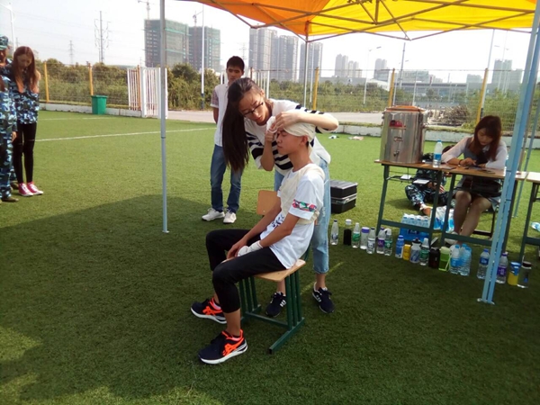 在新生军训休息期间,传媒系志愿者开展了一场精彩详尽的应急救援、救护知识培训,通过专业知识讲解与现场示范相结合的方式让参与培训的同学获益匪浅。通过示范操作和练习,让每一位学员基本掌握了胸外按压、人工呼吸、绷带包扎、等日常救护知识。