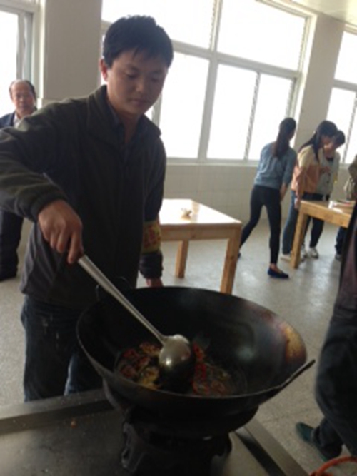 此次大赛由传媒工程系的蔡忠弟老师带领尹磊和康恒两位同学共同参赛完成的,康恒同学在“你问我答”答题中五题全部答对,最终获得五样食材,后由蔡忠弟老师掌勺,最终做出菜品为“如鱼得水”,获得后勤公司评委和团委领导评委的一致好评!真正做到了色香味俱全。