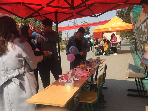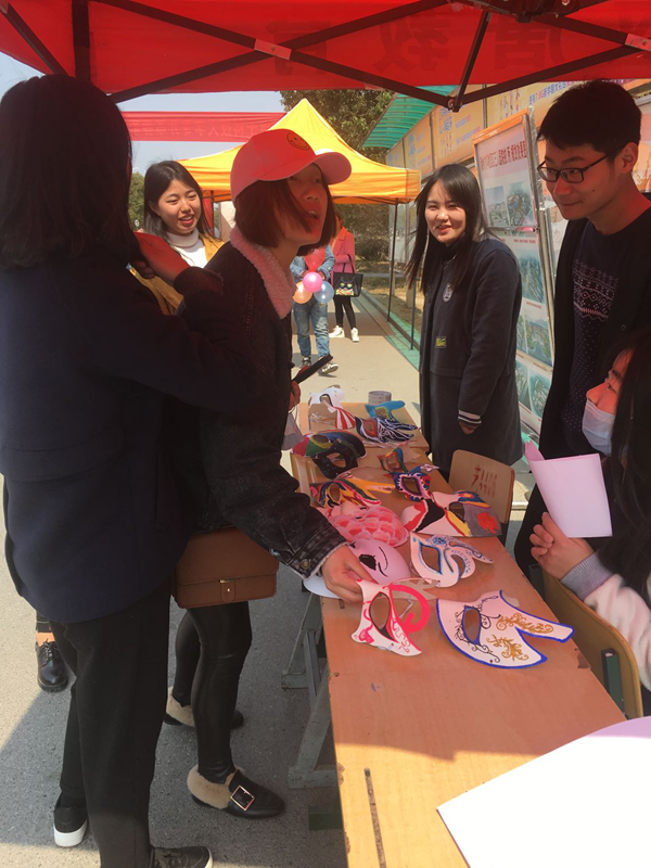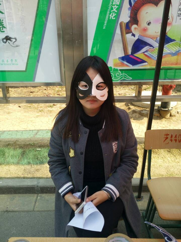 为了比赛的顺利进行,工作人员早早到达现场,有条不紊地布置展台与宣传活动。展出正式开始后,各种形形色色、别具匠心的面具引得过路的同学们驻足观看、不停称赞。面具风格迥异,高贵典雅、可爱温馨、惊悚狰狞的图案设计让人赞不绝口,不管是复杂的花纹还是简约的线条,都凝聚了同学们的奇思妙想,表现出同学们的动手操作能力。工作人员热情地进行宣传,同学们被别有新意的面具吸引,纷纷在展台前驻足,欣赏各具特色的面具作品,有的同学对面具非常的喜欢,我们也就把面具送给了他们,把传媒学子的风采展现在同学们的面前。