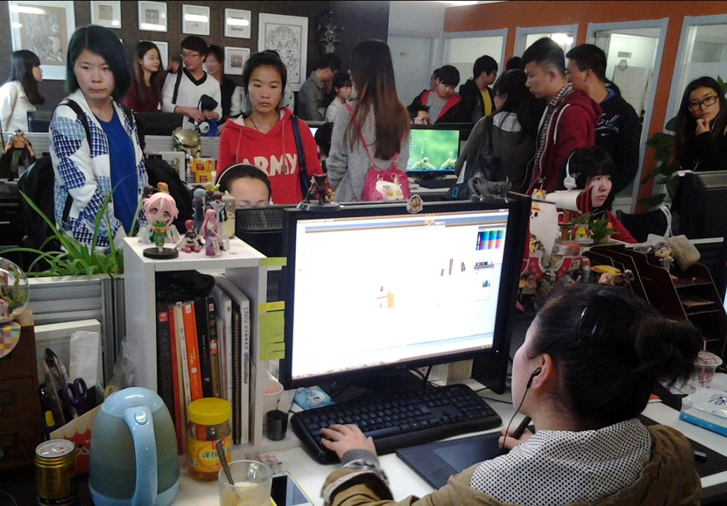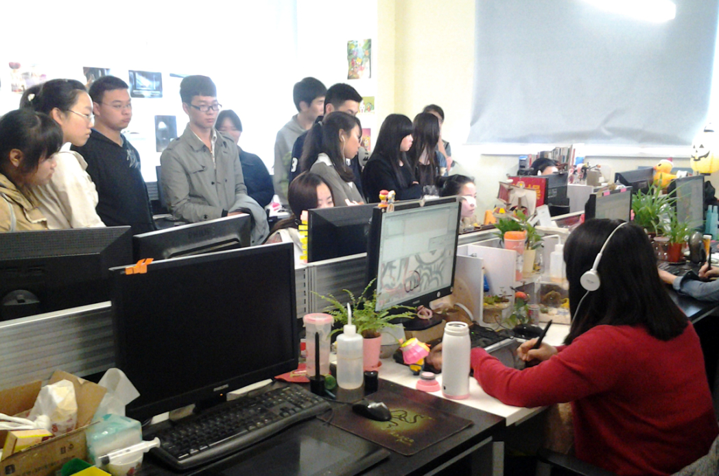 下午,带领学生来到南京锦秀墨丽数字科技公司参观学习。学生们看到最前线、最真实的动画制作过程,并为动画师熟练的操动画技法所惊叹。公司的创意总监和我们教师、学生也交流了动画剧本、分镜头、原动画设计过程中的方法和创作过程。