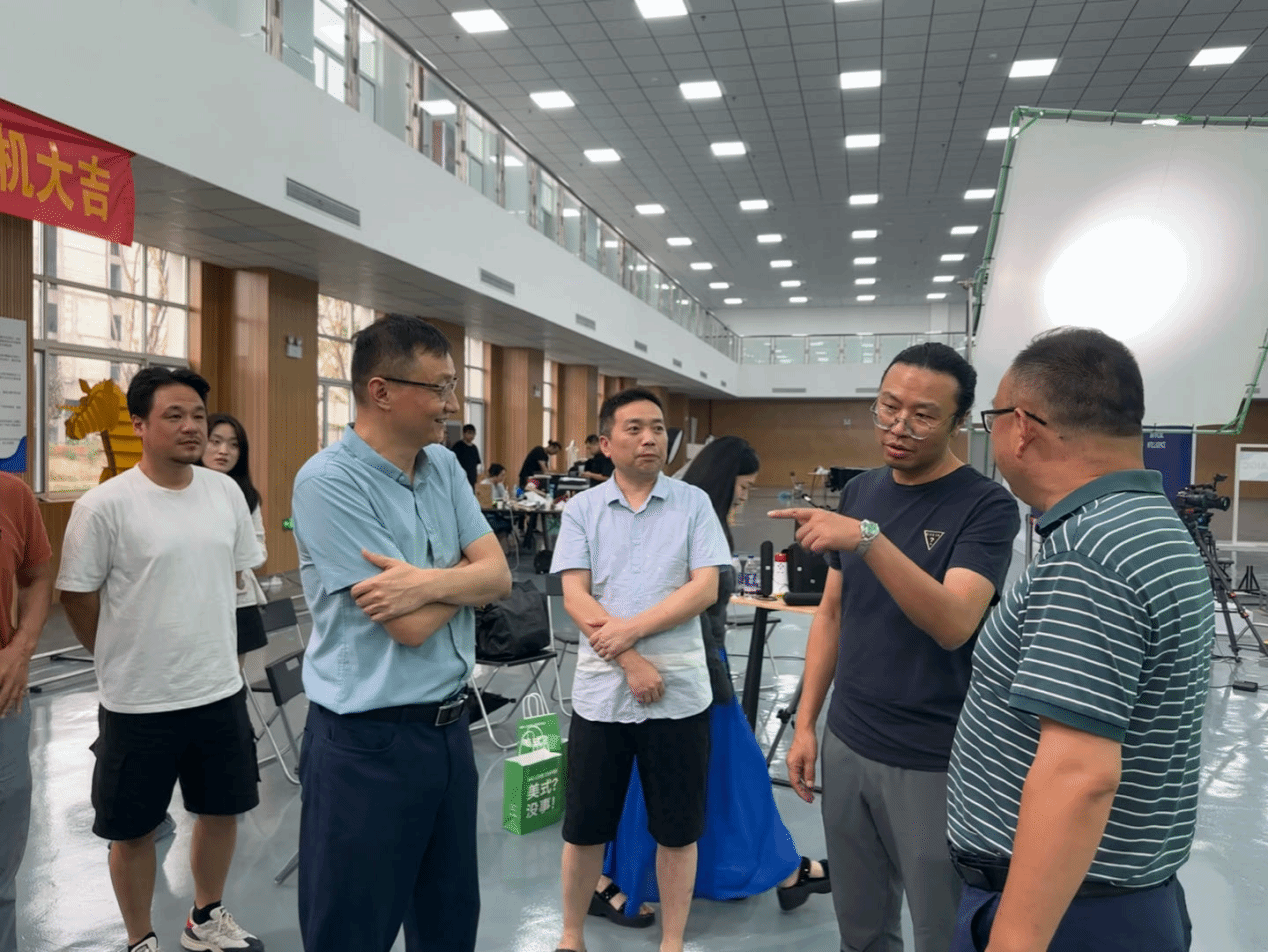 摄制期间,合肥工业大学张宝教授、合肥大学杨大松教授、安徽省第十一届工业设计大赛专项赛评审专家、校传媒与设计学院负责人深入拍摄现场观摩指导,并与南艺专家、项目组负责人进行人工智能技术应用开展交流。