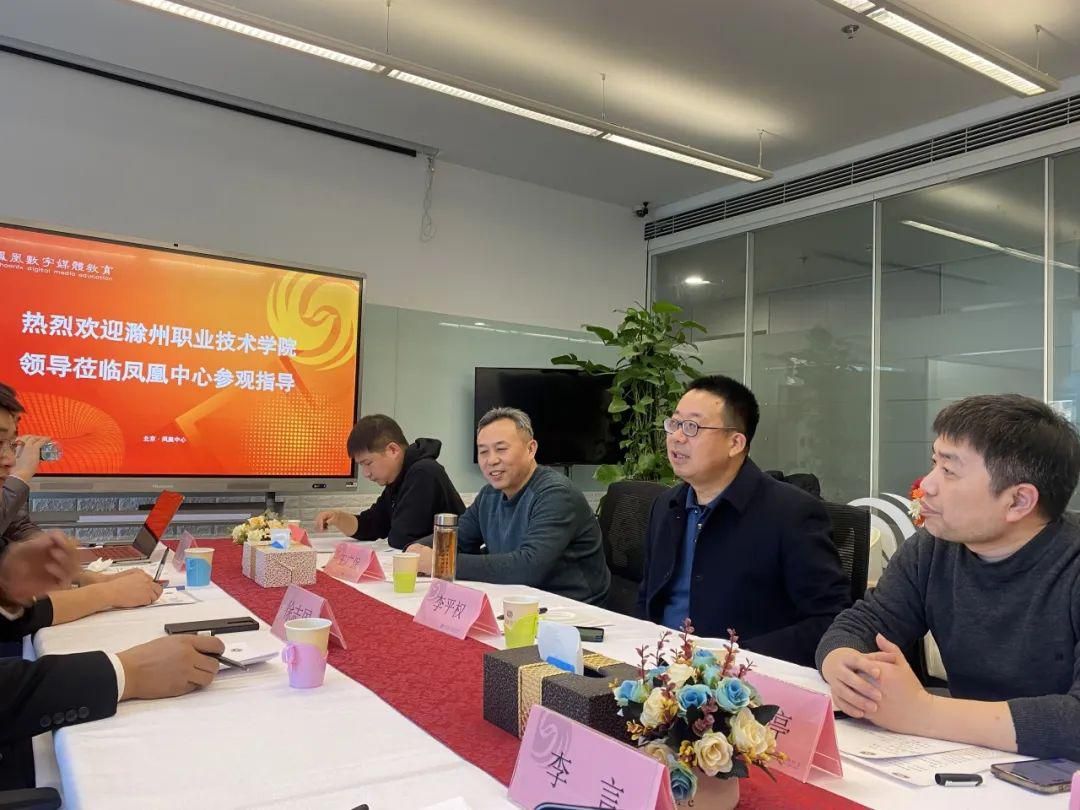 近日,awc777万象城娱乐官网党委委员、工会主席李平权,传媒与设计学院书记王广保,传媒与设计学院王一超博士,苏皖数字产业研究院院长 周苏亭及专家赵元一博士,参访北京凤凰中心,交流座谈。此行受到凤凰教育总裁助理兼凤凰数字媒体教育行政总裁徐志国热情接待,教育部产教融合基地总监刘建飞陪同参访,并组织落实产业学院的下一阶段工作。