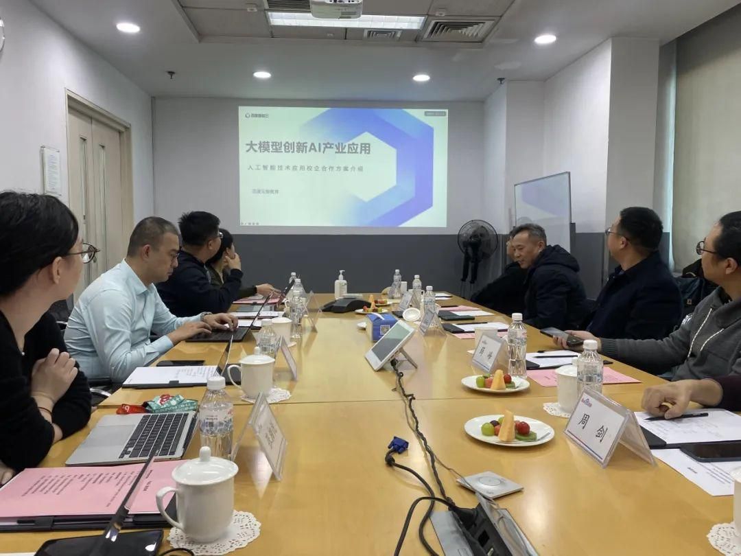参观体验后,校方领导和产业学院专家与百度云智教育解决方案总经理谭承轩深入探讨,围绕“AIGC赋能教育场景的应用&校企产教融合 建设数智工坊”的主题,进行了充分的沟通与交流。