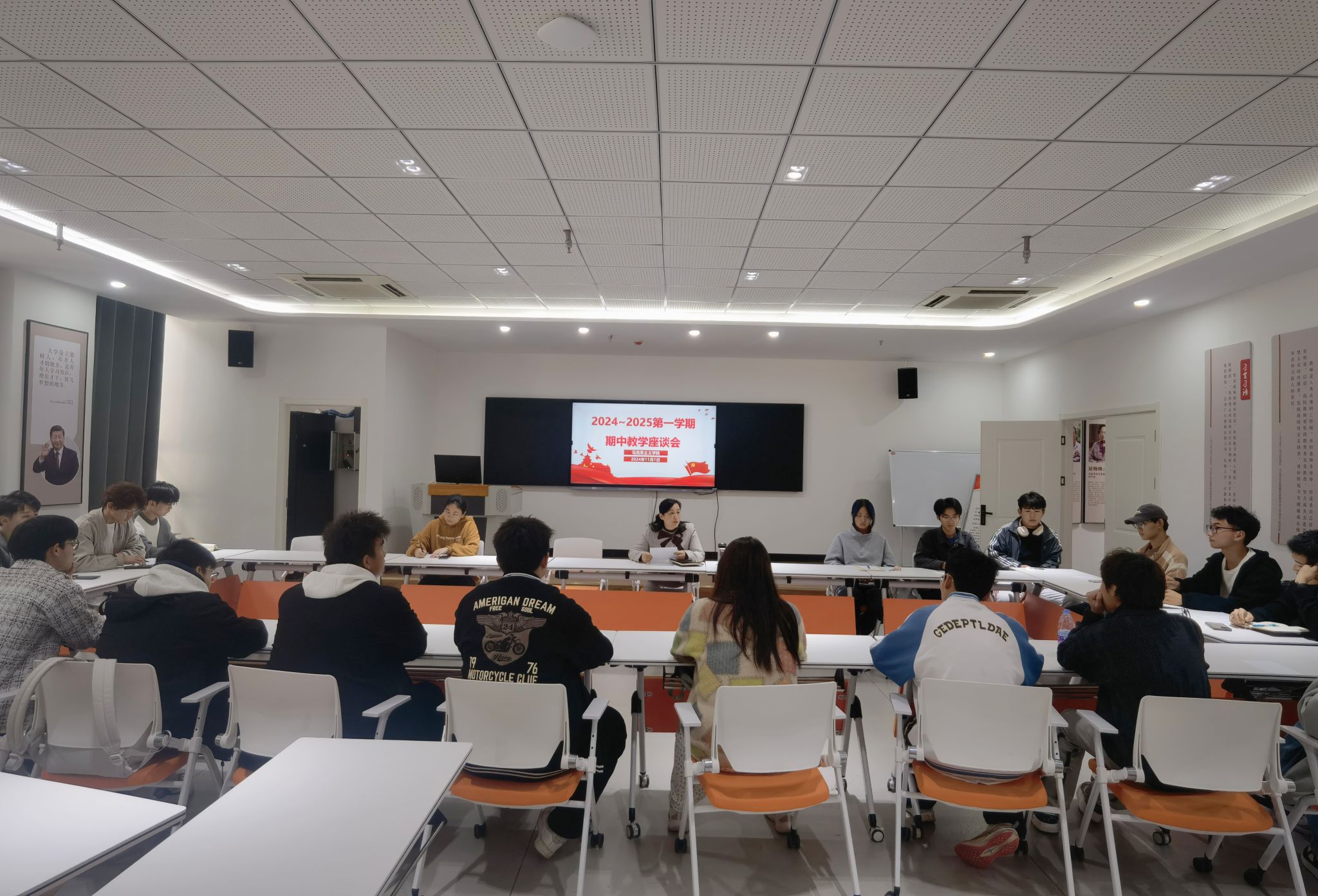 为促进师生沟通,切实提升教风学风,2024年11月1日,马克思主义学院在“大思政课”数字研学中心举行了本学期期中师生教学座谈会。会议由马克思主义学院副院长张家莉、思想政治教育教研室主任胡颖颖主持,2024级18名大一学生代表参会。