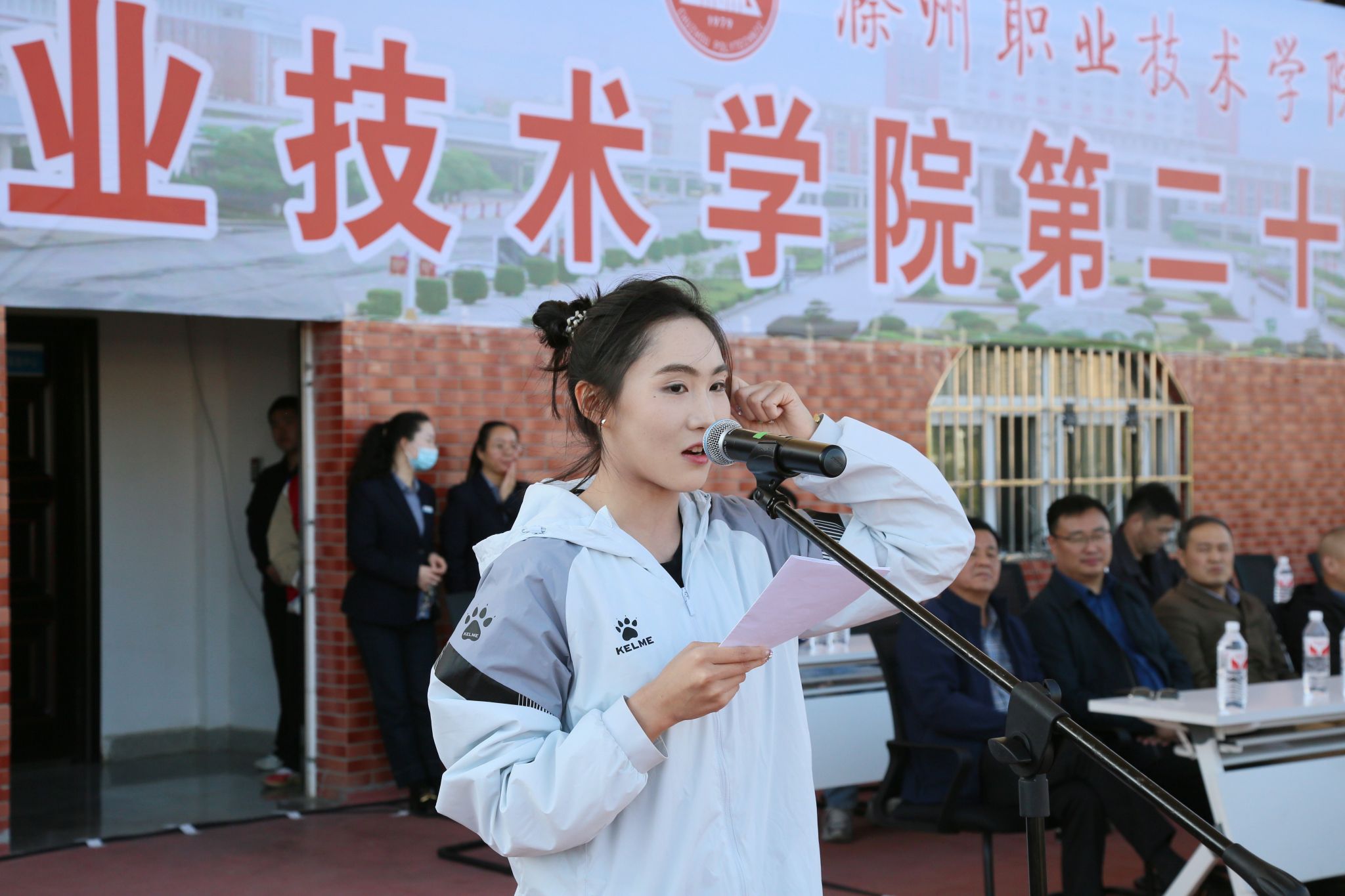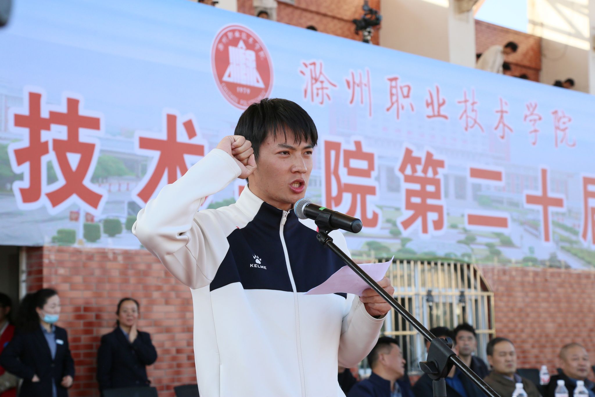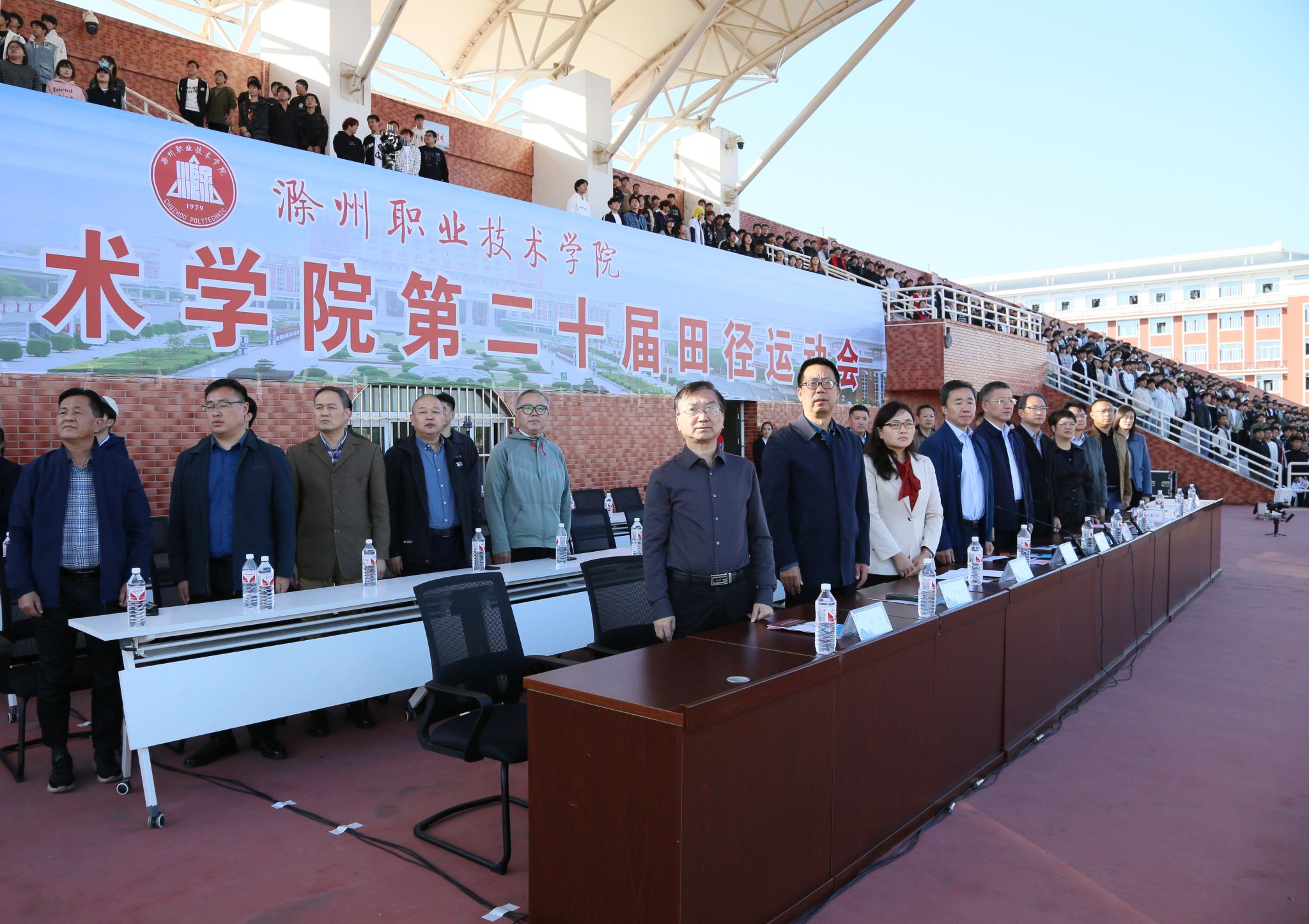 伴随着激昂的《运动员进行曲》,国旗护卫队、校旗会旗队、红旗方阵、裁判员方队、各教学院部师生代表队依次入场。各学院方阵队采用富含创意的设计,以其独特的风格展示学院风采,在表现积极进取精神面貌的同时,也体现出滁职青年奋楫争先的青春底色。入场仪式完毕后,全体肃立,高唱中华人民共和国国歌,注视着庄严的五星红旗冉冉升起。许雪峰在致辞中代表学校向悉心筹备本届运动会的师生员工表示诚挚的谢意,向全体运动员、裁判员致以亲切的问候和美好的祝愿。