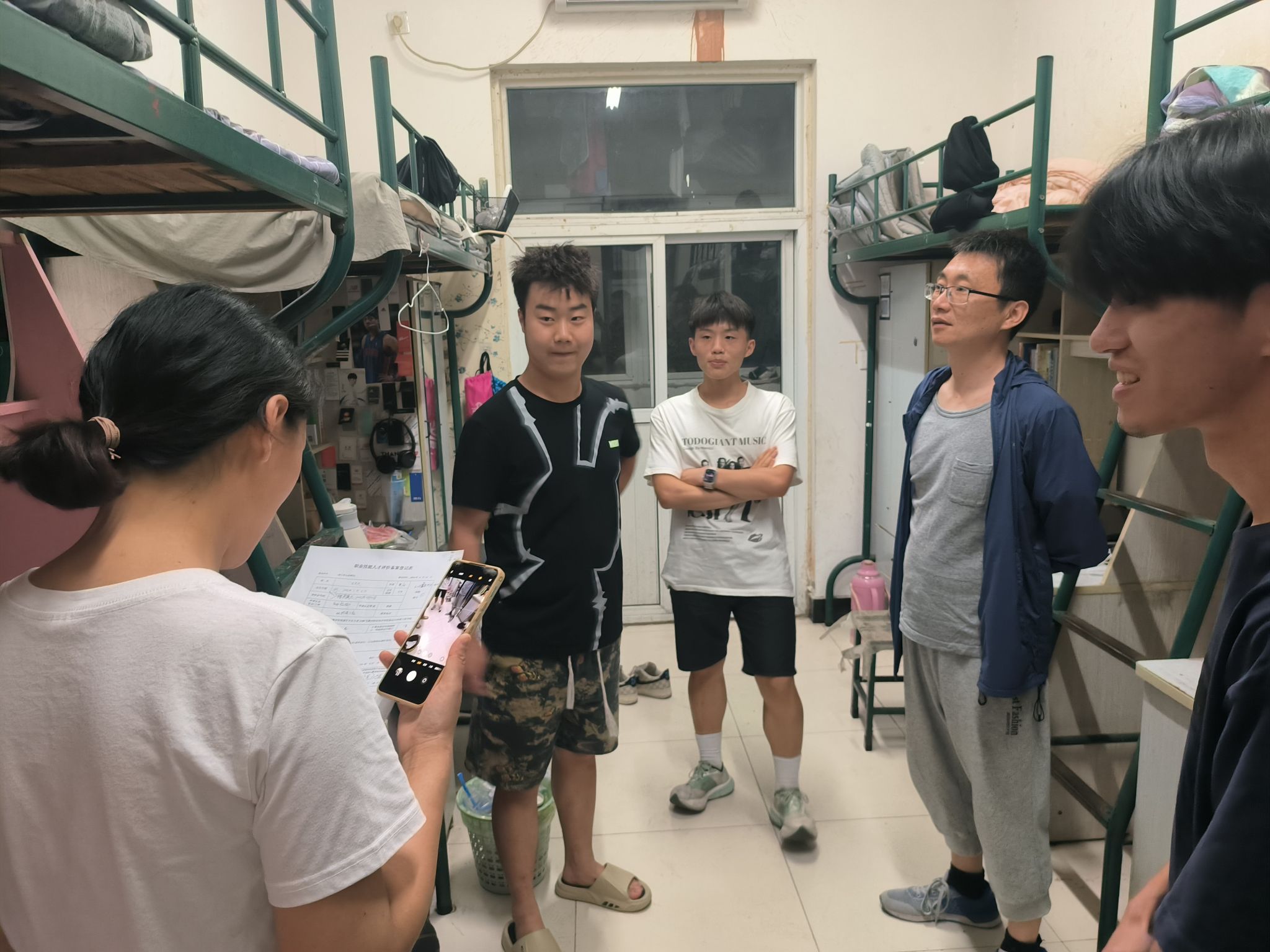 在入党积极分子宿舍,张功会要求他们要以党员的标准严格要求自己,团结同学、互帮互学,在方方面面做榜样、作表率,以实际行动向党组织靠拢,争取早日成为一名有理想、有追求、有信念的合格党员。在未通过6S认证的宿舍,老师们详细了解原因,深入宣传学校6S管理理念,鼓励他们克服困难继续申报,争取早日获评。