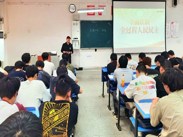 此次形势政策课授课主题为《全面认识全过程人民民主》。在授课过程中,胡凼从同学们身边的基层群众自治制度讲起,为同学们讲解了中国民主探索、实践与发展的艰苦历程,深入剖析了中国式民主与西方民主模式的根本区别,帮助同学们更好地认识到中国式民主是最广泛、最真实、最管用的社会主义民主。