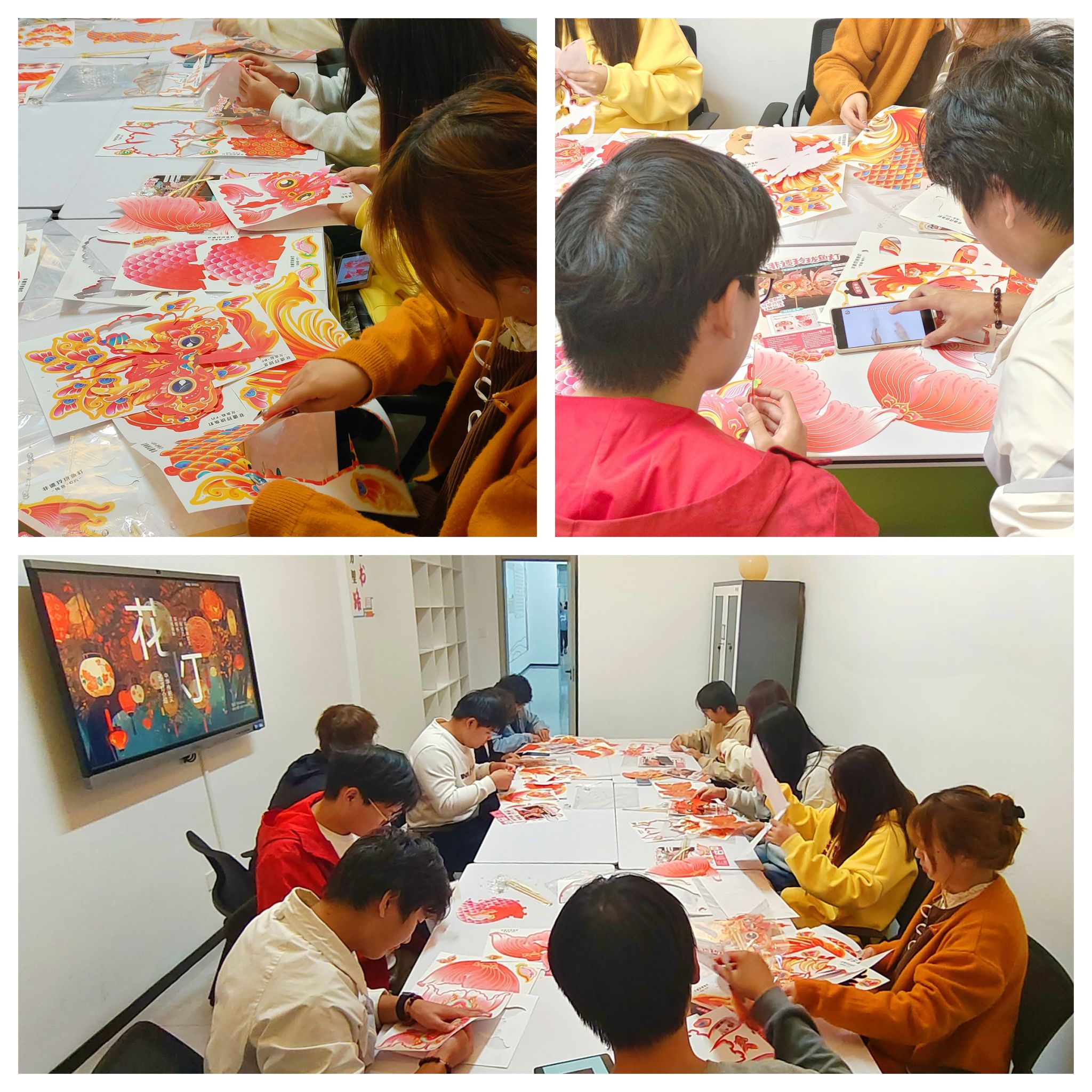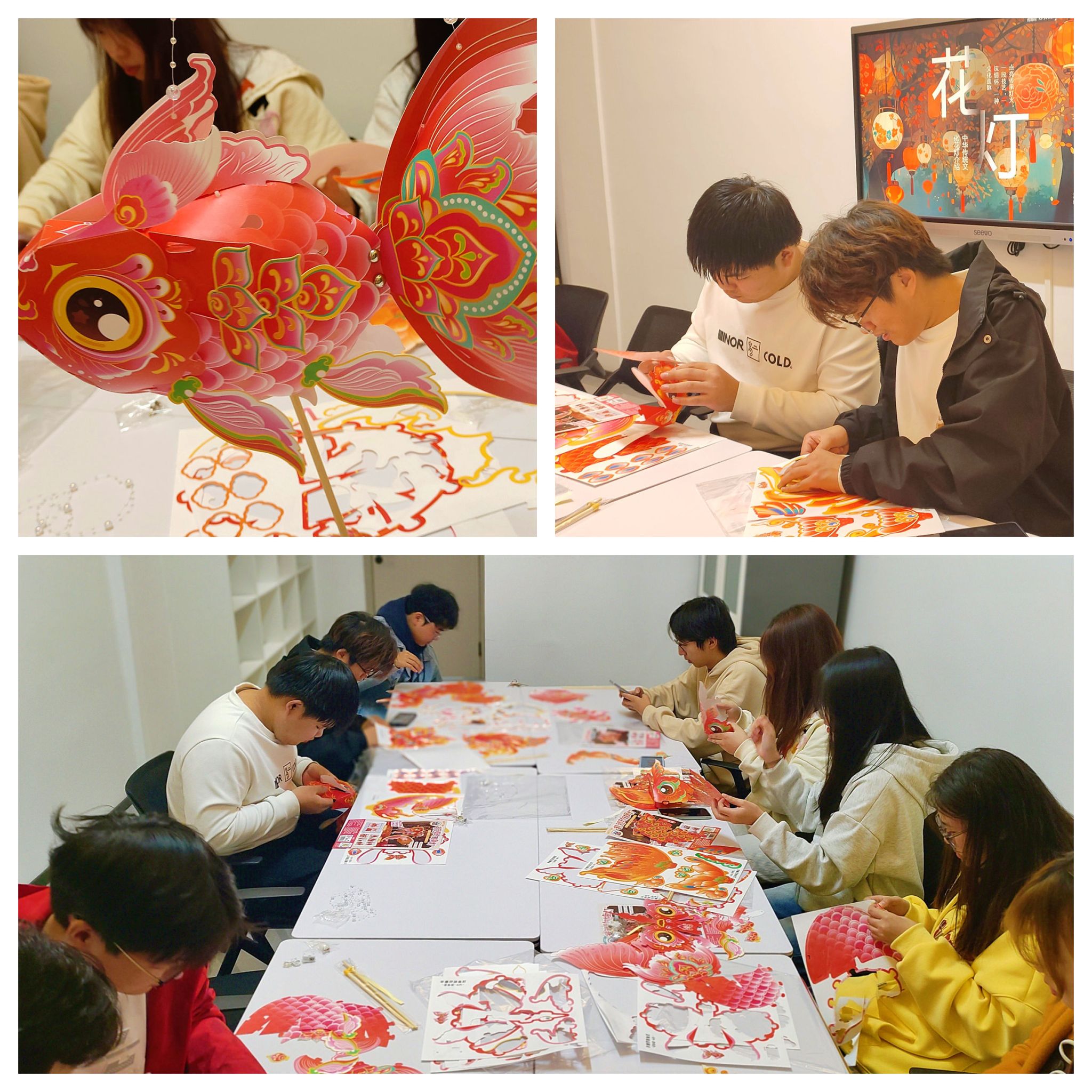 在制作过程中,同学们互相交流心得,分享各自独特的见解。一盏盏花灯在一双双巧手中渐渐成形,同学们纷纷拍照留念,记录下这一温馨而美好的瞬间。璀璨的花灯,不仅是创意与技艺融合的艺术瑰宝,更承载着对传统文化的深情弘扬与接续传承。