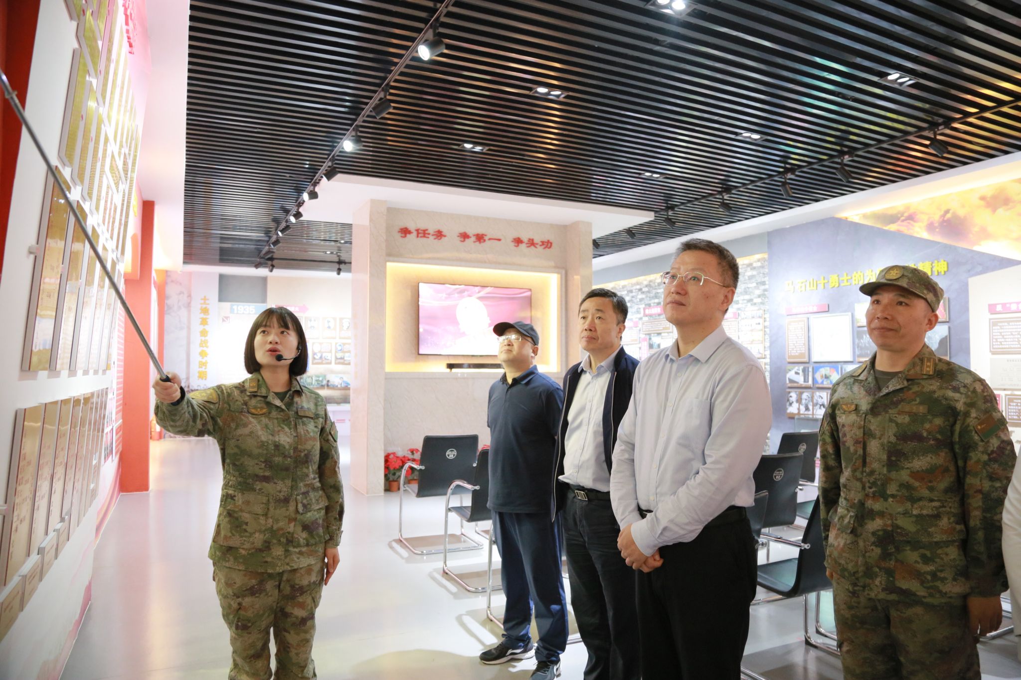 曹付忠一行跟随部队干部及讲解员参观了该部从土地革命战争时期到社会主义全面建设时期各个历史时期的辉煌战斗历程,通过珍贵历史图片、实物和影像资料,追忆先烈丰功伟绩,深入理解军人坚韧不屈和无私奉献的精神。
