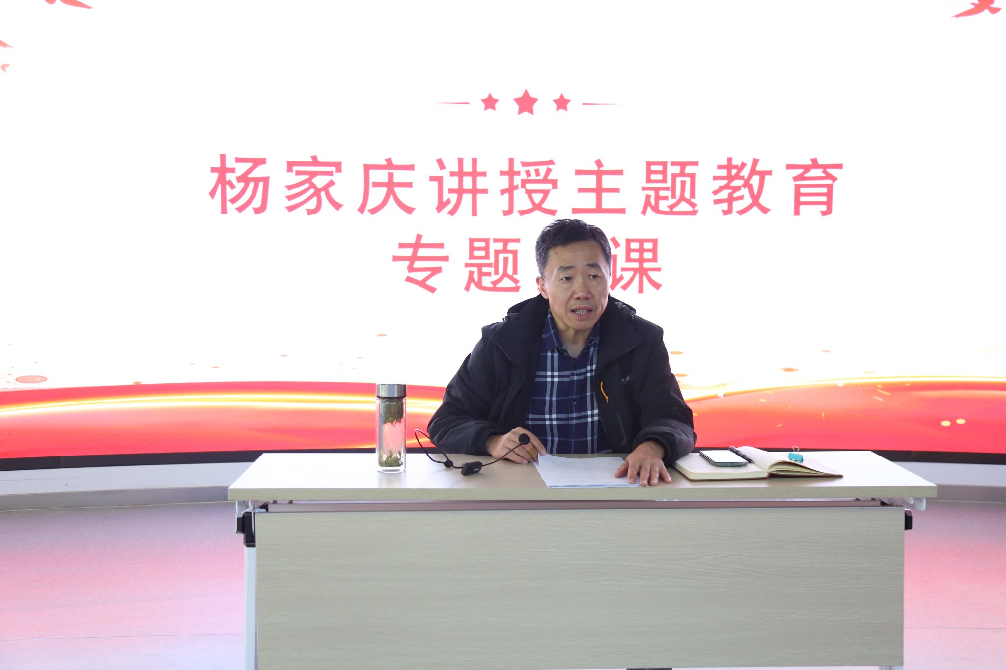 杨家庆结合自身学习体会和工作实际,以《学思想 明方向 见行动》为题,从“深刻领悟习近平新时代中国特色社会主义思想开辟了马克思主义中国化时代化的新境界”“准确把握新时代新征程中国共产党的使命任务”“奋力开创学校高质量高发展的新局面”等三个方面进行了详细阐述。