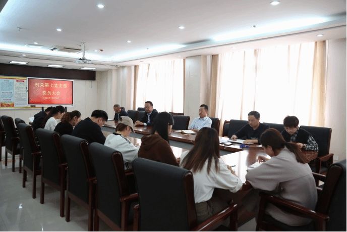 10月13日下午,机关第七党支部在综合楼704会议室召开学习贯彻习近平新时代中国特色社会主义思想主题教育党员会议,校党委副书记杨家庆,校党委委员、工会主席李平权以党员身份参会,会议由机关第七党支部书记顾宏才主持。