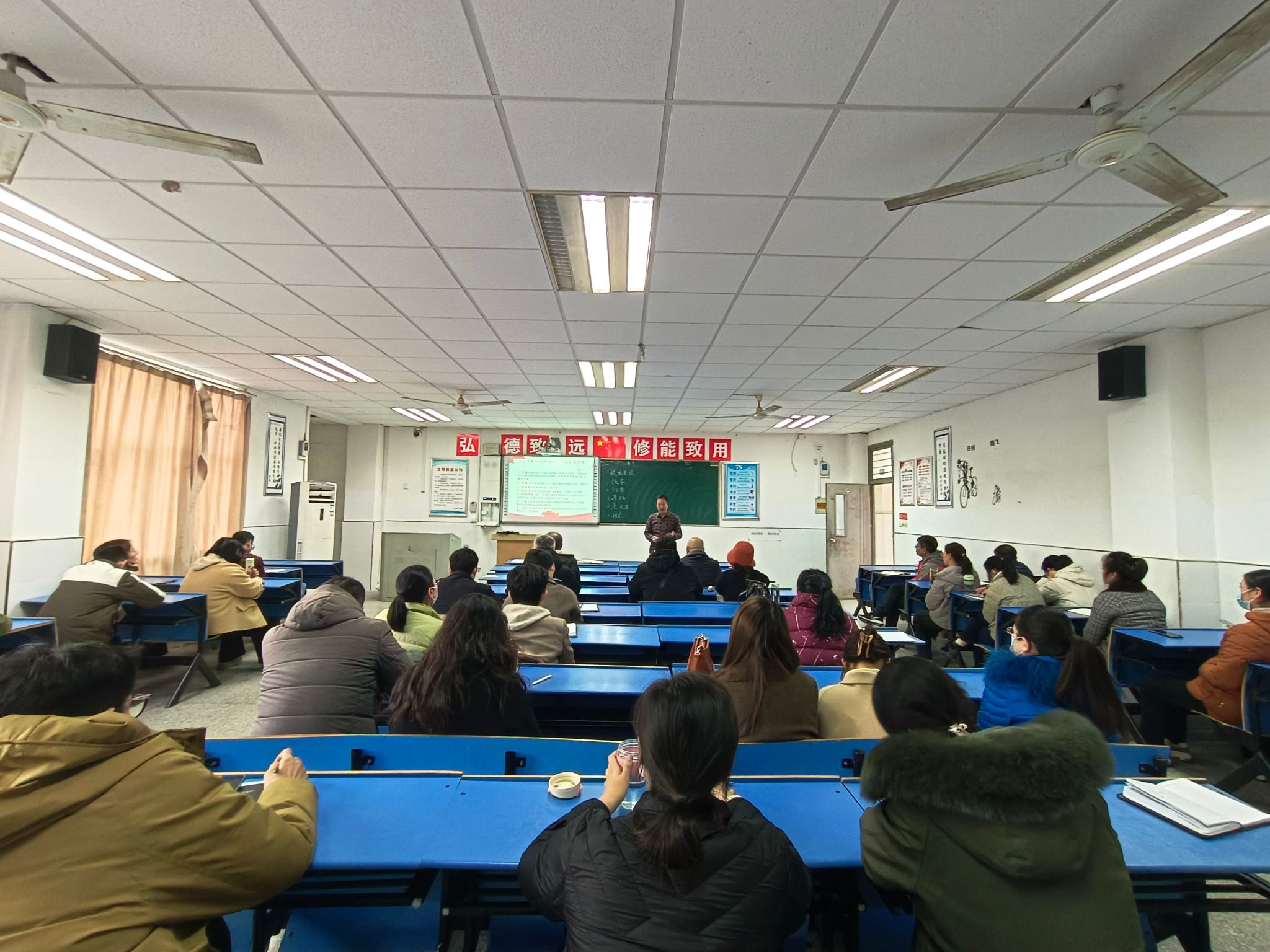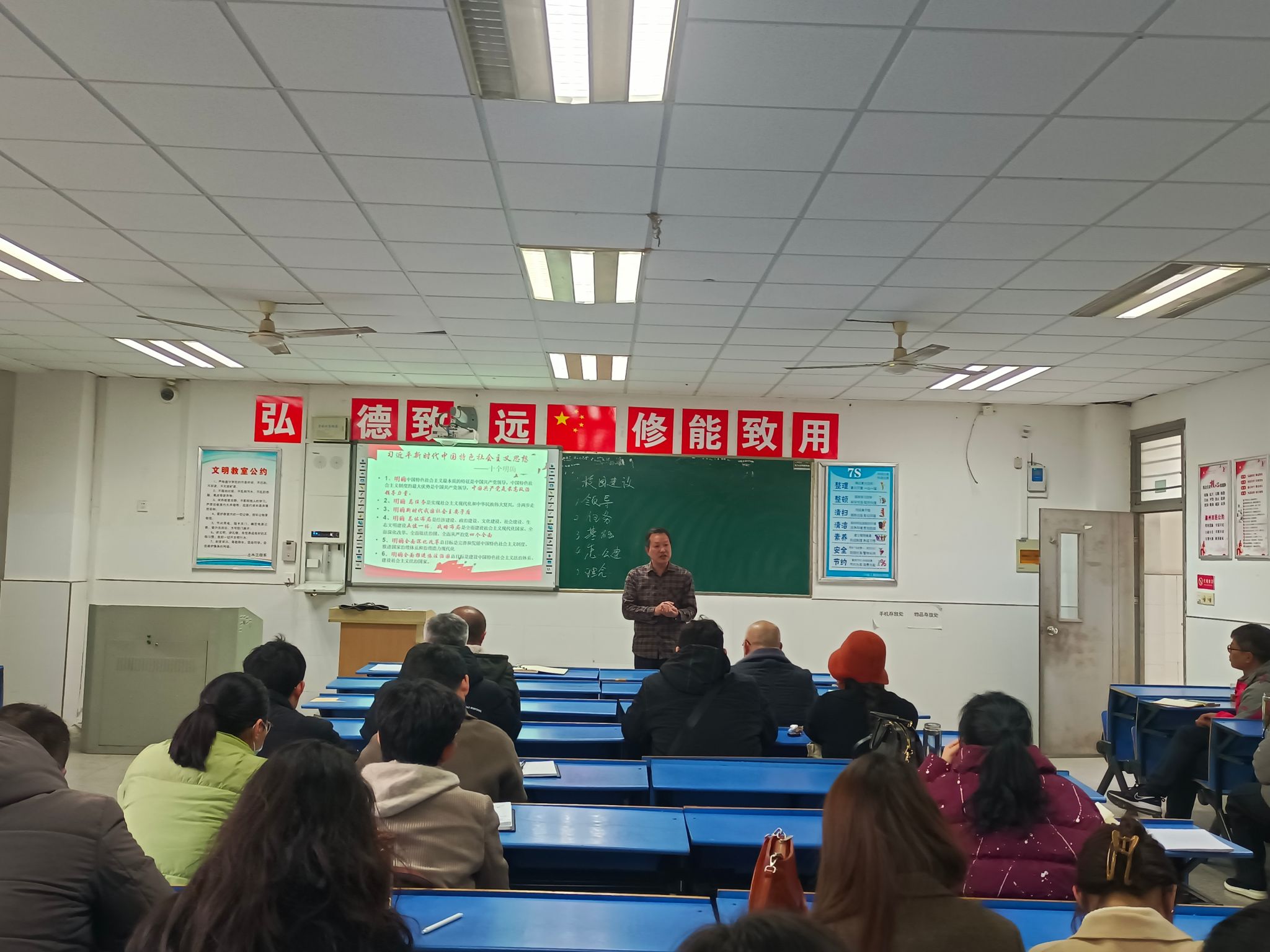 12月6日下午,建筑工程学院党总支书记刘文元在4201教室讲授《学习贯彻习近平新时代中国特色社会主义思想》主题教育专题党课,全体教师参加学习。