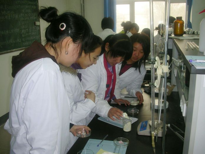 本专业理论课程均在具有全自动交互式电子白板的新型多媒体教室进行授课,以提高学生学习的效能。本专业实验课课程具备较完备的实验实训条件,包括食品化学、食品微生物技术、食品检测等专业基础课程的实验实训室和食品加工、感官评定和食品检验等专业课程实验实训室。实验实训室具有分析天平、酸度计、显微镜、恒温水浴锅、无菌操作台、紫外分光光度计、气相色谱仪、液相色谱仪等食品分析与检测常用的仪器设备;有高压均质机、啤酒发酵设备、烤箱、醒发箱、食品压片机、桃酥饼干成形机、酸奶机、真空包装机、气动灌肠机、脂肪测定仪、膳食纤维测定仪、凯氏定氮仪等食品加工常用仪器。