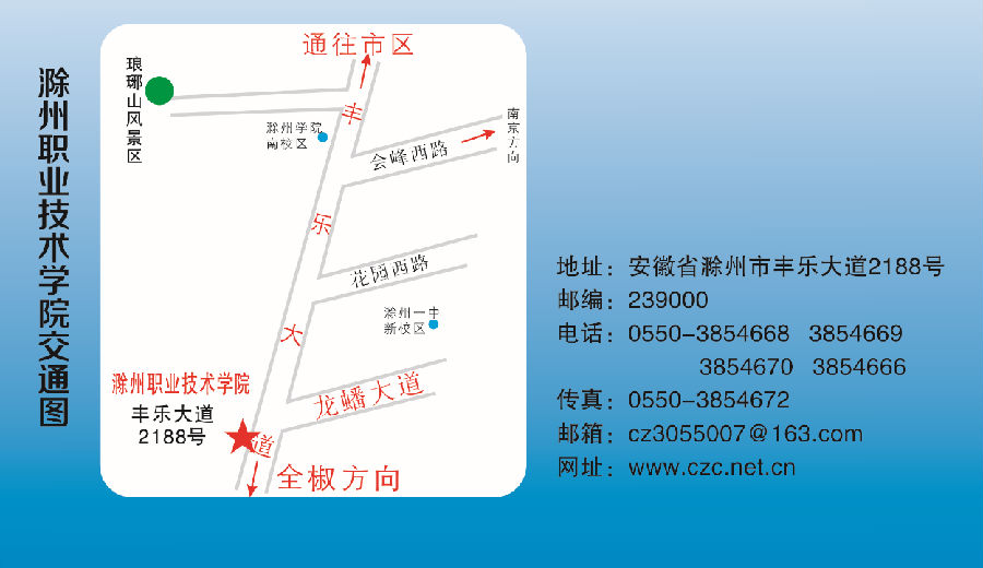 自驾车:合肥方向的从全椒出口下高速,向滁州方向行驶18公里既可以到我院新校区。