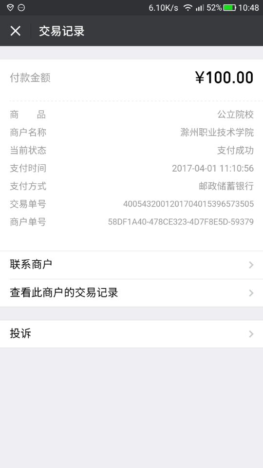 3、支付后显示如下:“商品名:公立院校;商户名称:awc777万象城娱乐官网”