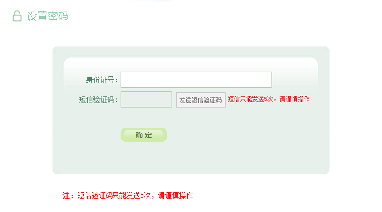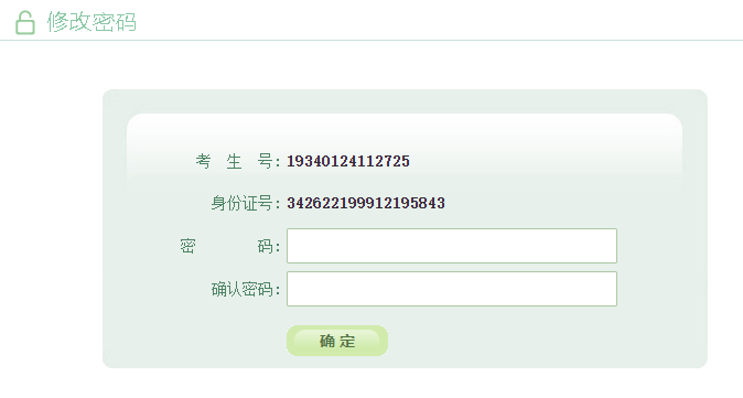 输入身份证号,点击“发送短信验证码”按钮后,系统会随机发送6位数字验证码至考生报名时所填的手机号上(即在安徽政务服务网上注册时填写的手机号码);填写完短信验证码,点击“确定”,跳转至考生修改密码页面,设置考生登录密码。短信验证码只能发送5次,请勿短时间重复发送验证码。