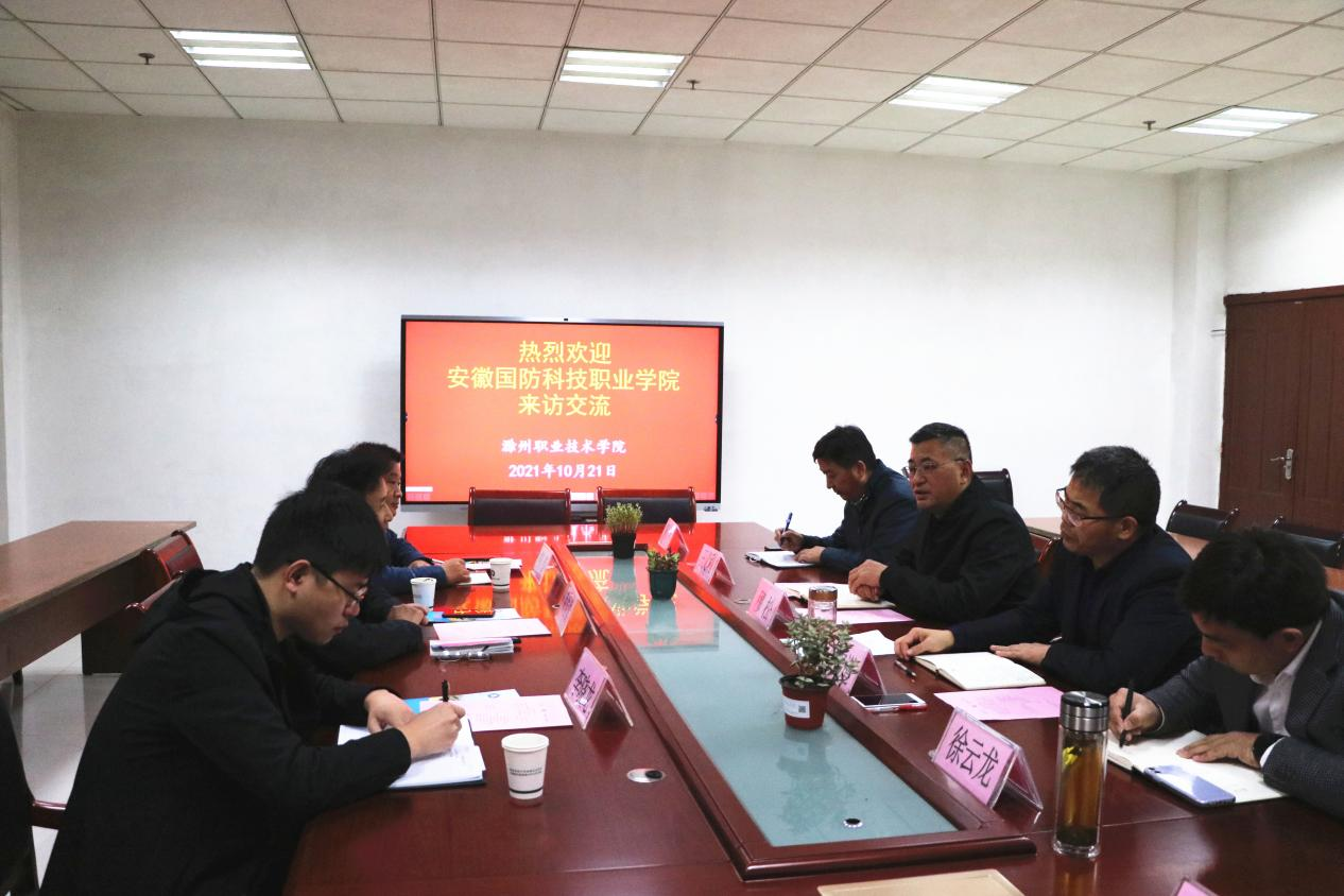 10月21日下午,安徽国防科技职业学院招生就业办主任束传俊一行来awc官网考察交流,校党委委员、校长助理、招生就业处处长穆松,招生就业处其他负责同志参与了交流活动。