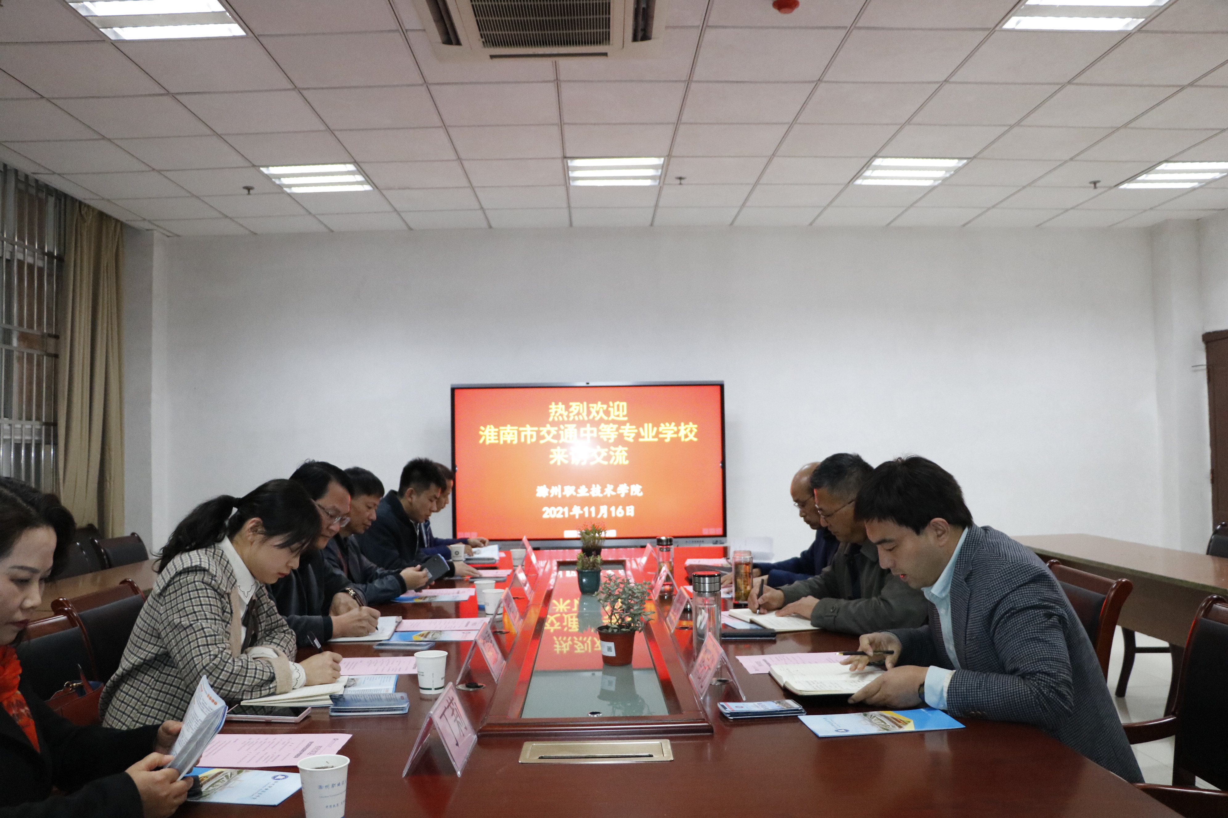11月17日上午,淮南市交通中等专业学校书记、校长程礼一行来awc官网考察交流。校党委委员、校长助理、招生就业处处长穆松热情接待了程礼一行,继续教育学院院长李永泉,招生就业处副处长徐云龙,以及招生就业处相关人员参加了座谈会。