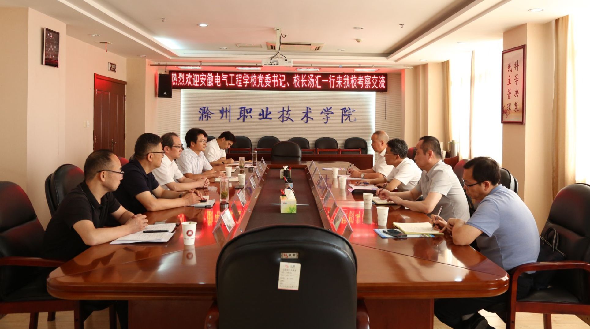 6月27日,安徽电气工程学校党委书记、校长汤汇一行来校访问交流。学校党委副书记、校长许雪峰,党委委员、副校长苏有良,校长助理、招生就业处处长穆松热情接待了汤汇一行,并在综合楼804会议室举行了座谈。会议由穆松主持,学校教务处、学生工作处、招生就业处等有关部门负责人参加了座谈。