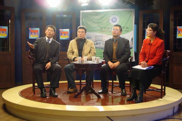 12月25日,我院招生就业处处长穆松、艺术系书记陈震、学生处副处长周多道来到滁州电视台“大家谈”栏目录制现场,就当前金融危机下,如何应对“就业寒冬”接受了栏目采访。出席此次活动的嘉宾还有企业代表安徽康佳电子有限公司杜伟经理,各系部毕业班辅导员、招生就业处部分同志以及来自我院创业中心、职业发展协会及参加省职业规划大赛获奖的学生代表。