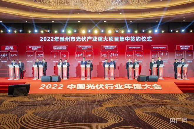 12月1日,以“共迎双碳新时代,同筑光伏新高地”为主题的2022中国光伏行业年度大会暨(滁州)光伏高质量发展高峰论坛在滁州开幕。在期间举行的光伏产业重大项目集中签约仪式上,总投资1017亿元的16个项目落户滁州。