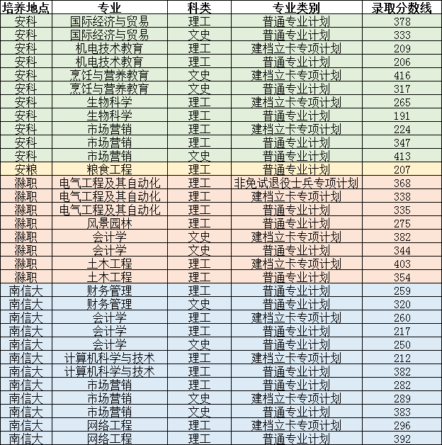 2022年安徽科技学院(滁州职院校区)专升本录取分数线