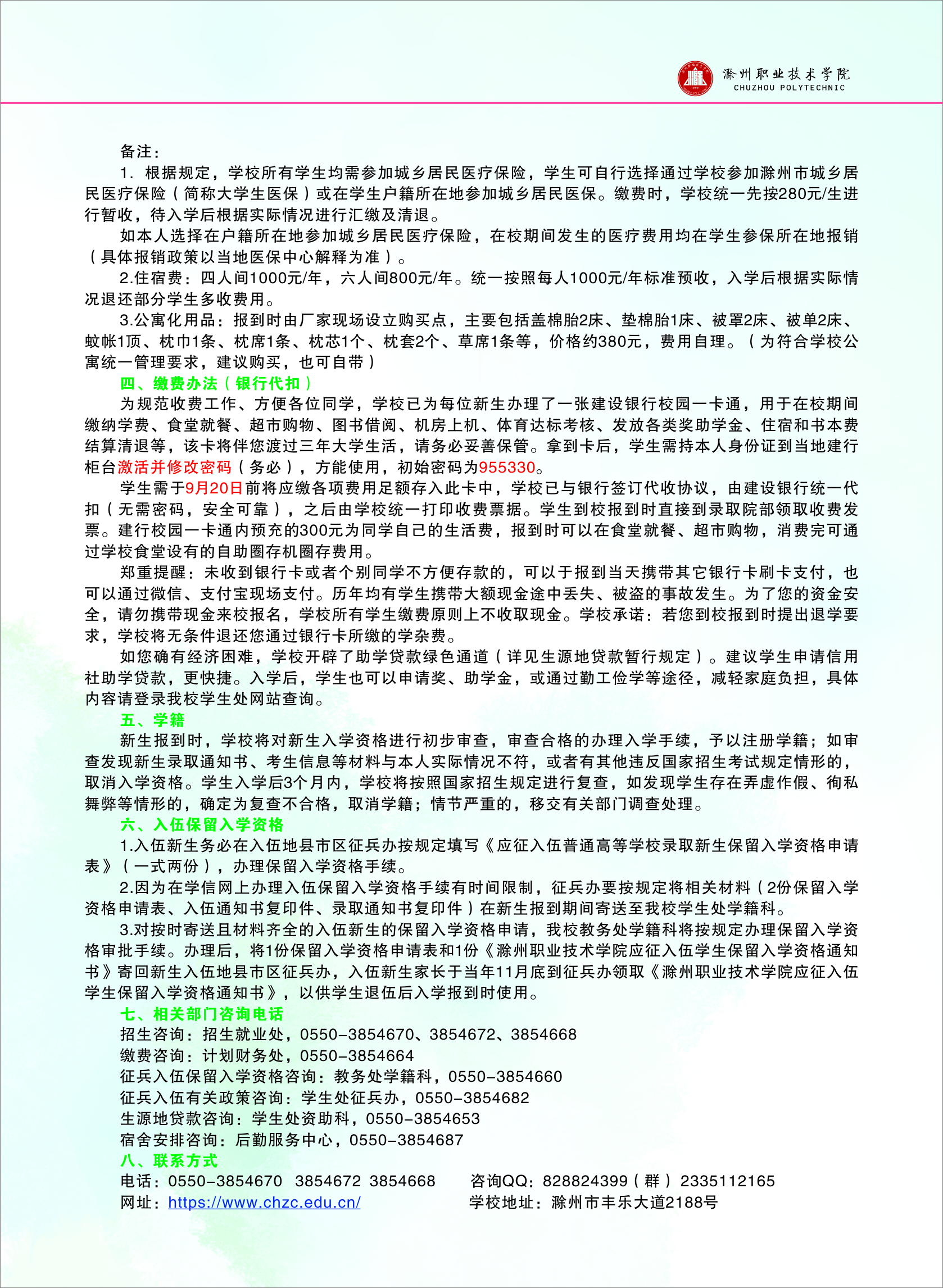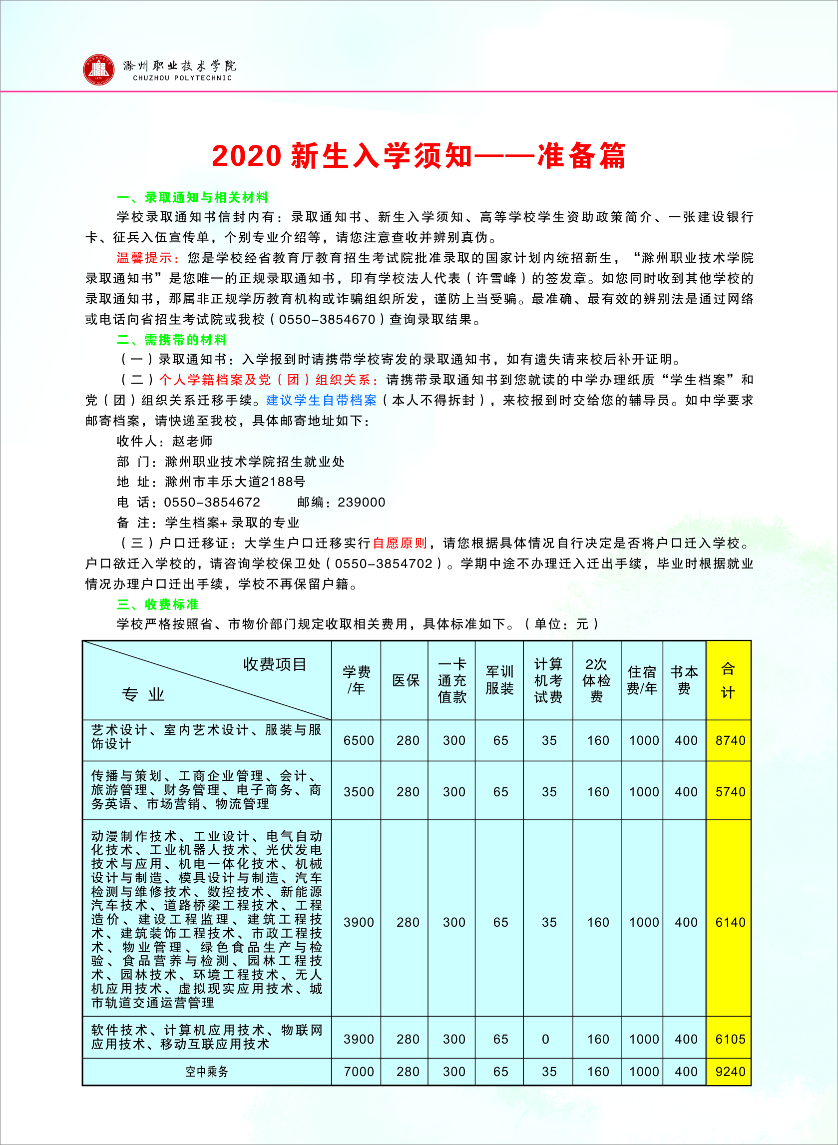 2020级高职新生入学须知