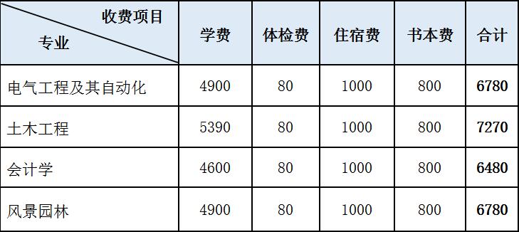 学校严格按照省、市物价部门规定收取相关费用,具体标准如下。(单位:元)