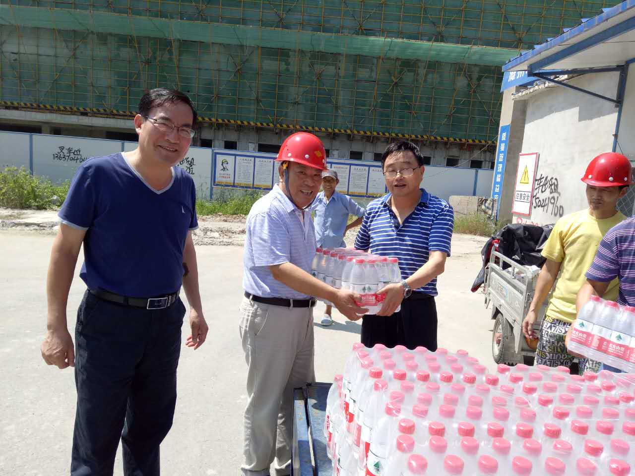 2016726日上午,学院副院长程一斌携总务处李有志、朱国新、王磊一行赴学院11#-12#学生公寓施工现场,向高温酷暑下工作的施工人员表示慰问,特意送去40箱矿泉水,并安排学院食堂定期供应绿豆汤。同时召开了工程协调会,程院长指出,学生公寓开学必须能保证投入使用,时间紧,任务重,希望加强管理,遇到问题及时协调沟通,确保按期完工,但暑期高温,要注意防暑降温,确保安全。