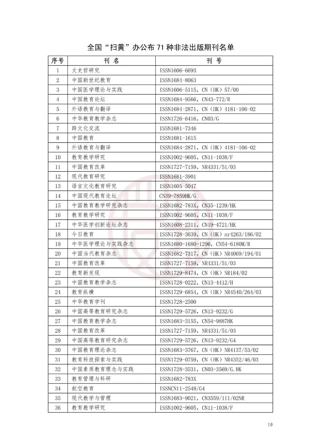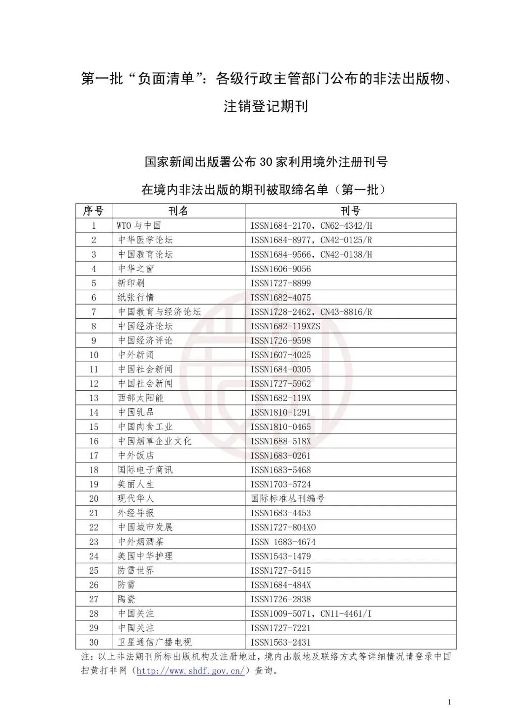 国家新闻出版总署、全国“扫黄打非”办公布的部分非法期刊目录(来源:国家新闻出版总署转载:爱知学者)