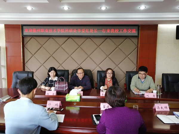 调研会上,商贸职院翟建华处长首先详细介绍了学校科研管理制度体系以及科研发展情况,并针对我们的提问给予认真解答,接着李爱红详细学习了商贸职院“三平台两基地”的创新平台制度与管理经验,对商贸职院平台建设成果充分肯定,同时双方就科研项目经费规范管理、成果转化、学报编辑工作、科研绩效考核、大学生科技创新等问题进行了探讨和深入交流。